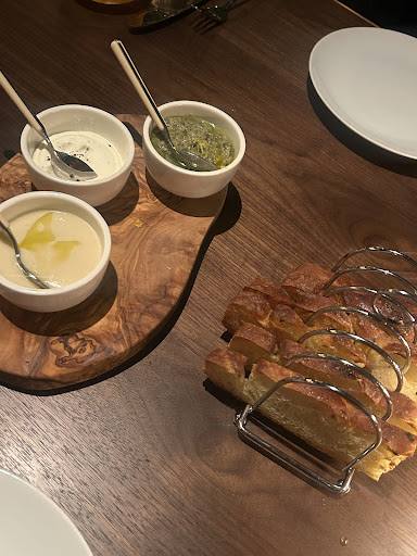 New restaurant w potential, but really needs to find its footing in order to match its price tag. No signage for streetside entrance that was through a door for a parking garage complex. Bar was beautiful as was the seating and lighting, but muzak style background audio was weird. Best waitress service we’ve had in a long time and well staffed floor/front of house staff. But heard our waitress get chastised by management for appropriately timing our experience menu courses as opposed to rushing our food (shout out to her for sticking to her guns). Of the experience menu: only 2 out of 4 apps were good (squash and salad. Not arancini or the toast that used to be focaccia). Both pastas were good. The swordfish was mid, but the steak had SILVERSKIN in it that we had to dress ourselves. Desserts also mid, but the description of ‘il limon’ was bafflingly opaque. Finally, the wines: the blanc de blanc i selected was good (but served in a white wine glass? $30 for a glass of $70 wine?) and the pairings selected for the menu were poorly timed, underwhelming, and simply grabs from off the by-the-glass list. One of our other self-selected wine was given as a fridge-temp/cold cab sav. That didnt improve w warming. Dc eater...