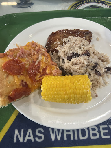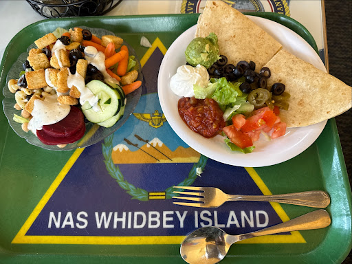 The food here is generally good, and always complete and filling. The variety is good at times, but lacking at other times. At peak meal times, due to half of the tables being secured due to the pandemic, and a large section walled off for most meals except weekday lunch, you might struggle to find a seat at a table which is authorized for use. Is it really better to force people from separate commands to sit at the same table rather than the next table over? Let's think about that one... Redeeming qualities include the exceptional salad bar (which you literally can't miss) and the amazing service from the staff. Note that during daily breakfast and weekend lunch, a queue forms for omelets, which can add to your wait time considerably. All in all an excellent...