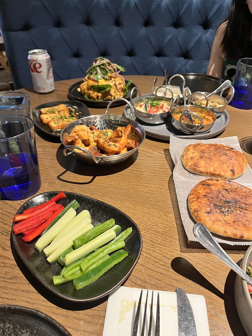 Speaking of food -- we got a bunch of items to share. We started off with the dip combo, tabbouleh, and grilled halloumi, then transitioned to the grilled shrimp and roasted cauliflower for our mains. Everything was absolutely incredible.