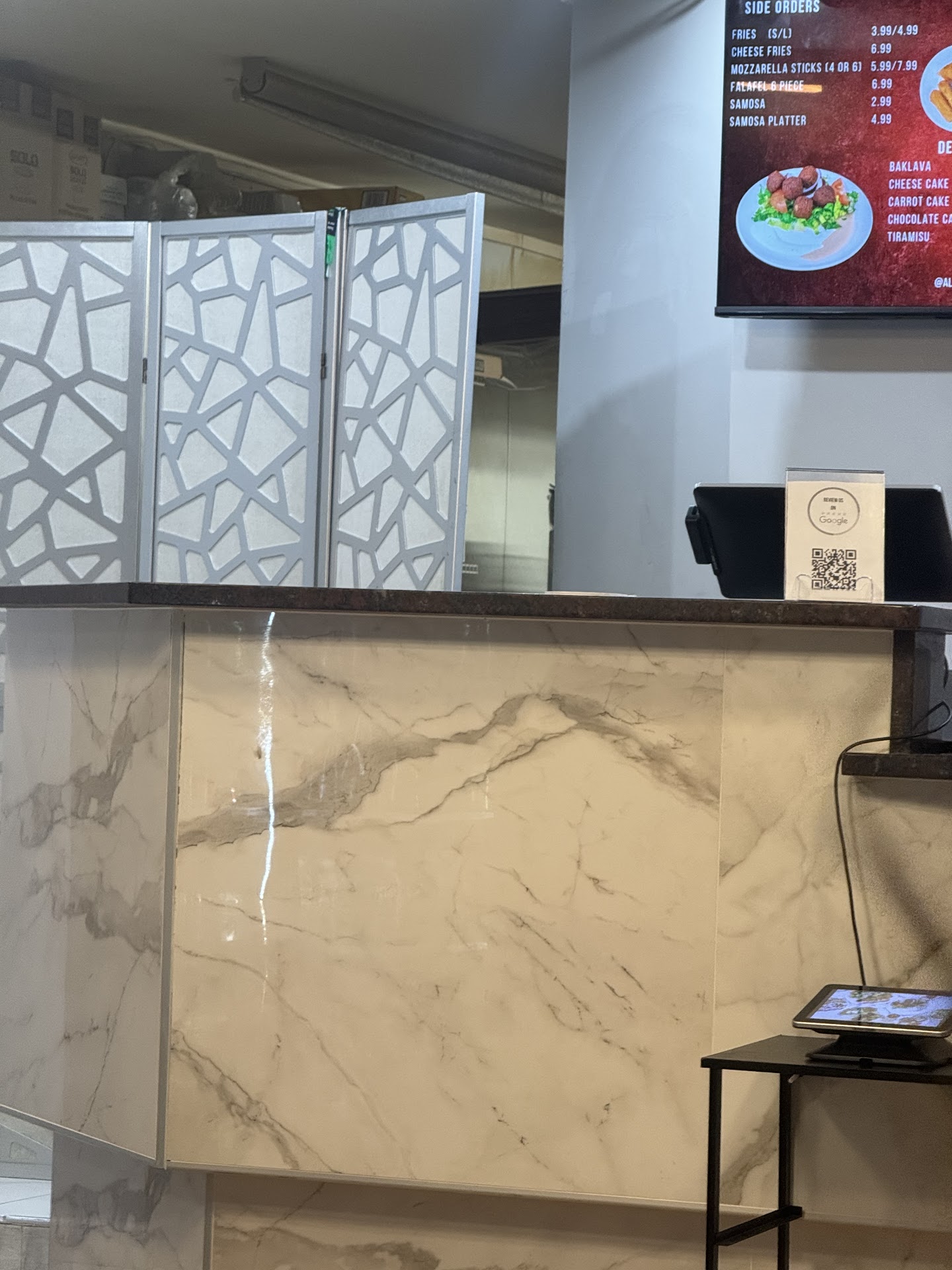 Read moreApproaching the place, it is super bright, which helps finding it as the restaurant is set back from the buildings around it. This also gave us a sense of safety walking in. There was someone at the counter ready to assist us, but being our first time in, we opted for a kiosk, off to the right side, with a big and equally bright screen, displaying images of every dish. This was very helpful and made the ordering easy and quick, even for us newbies to the place. We opted to take out. Already, in the car, the aroma of delicious food filled the air. Once at our place, we started opening the containers and wrappers, even the packaging was excellent, inside the plastic bag, a heavy-duty paper back, stapled to containers to prevent shifting and spilling during transport. The food was utterly delicious, from simple salad, tzatziki sauce (some of the best I have tried anywhere), chickpeas, seasoned fries, shawarmas and kabob. It would be 2 thumbs up but both my...