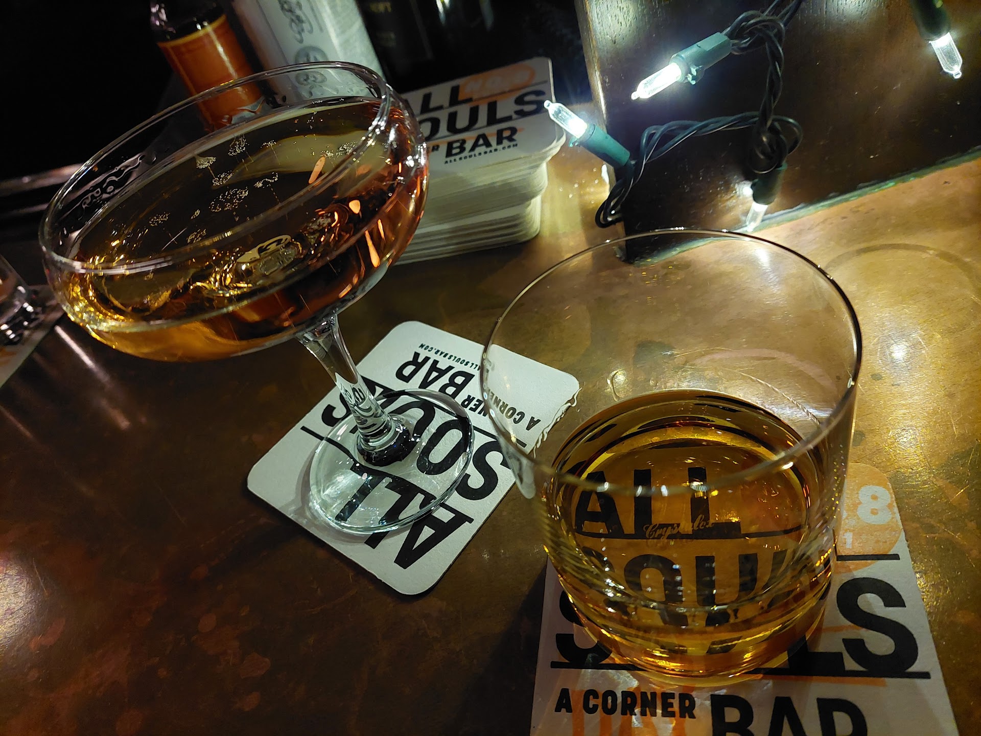 Read moreSeeking the solace of a simple, divey bar for somber drinking during a rain storm, a few colleagues and myself piled in, shook off, and took a seat at the big curved copper bar in the small grey cinderblock building. We were presented with a brief but delightfully varied draft list, and a list of cocktails that was straightforward and no-nonsense. After ordering our drinks and settling in, we got into some small talk with the bartender, a affable, well-dressed man with an impeccable beard and a friendly smile. Through the course of the chit-chat we requested recommendations for other, similarly dispositioned drinking holes, and this gentleman provided us with a list written on a coaster that would act as a roadmap for our own little puddle-hopping bar crawl through downtown DC. This casual act of honest kindness sent us on one of the most delightful jaunts through an unfamiliar city that I've ever had, and I'll be forever grateful for the priceless information that this gentleman and scholar provided us with that night. If it weren't for All Souls, it never would have happened. I can't think of a better place in the entire town to start your night than this humble little...