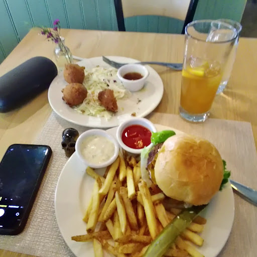 I got Corn fritters and the House Cheese Burger with fries. A burger will tell you everything about a place in one quick shot, My mother always told me that people would tell you everything you needed to know about them in the first half hour, a homily that has rescued me many times over the years and which I ignored to my peril. Burgers are like that. And the fries are simply confirmation of that initial revelation.