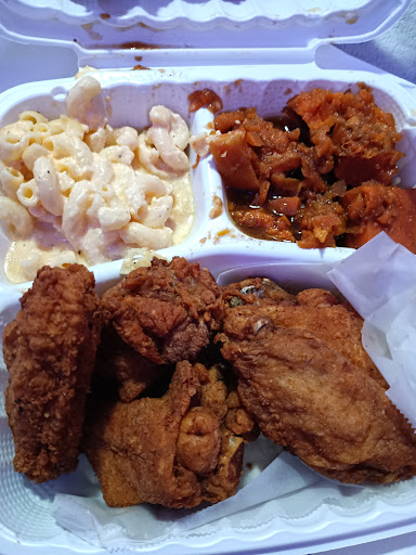 Read moreFood is probably a close 4. Just because it was hot and fresh. I had catfish which was fried nice and crispy and shrimp. Just wished it was seasoned some flavor. But I added hot sauce and yum. Greens were good and tender and tasty. Rice and gravy had a weird flavor so not my fav. Sweet potatoes good and sweet. Didn’t try the bbq chicken because of the reviews but I may try next time. Best part was the service Freddy was super nice and excited to make sure I knew food was coming fresh. So may take a min. I appreciate when I ask hey what taste good and people give their opinions. Not a lame response. I genuinely want to know that’s why I ask. He did great.