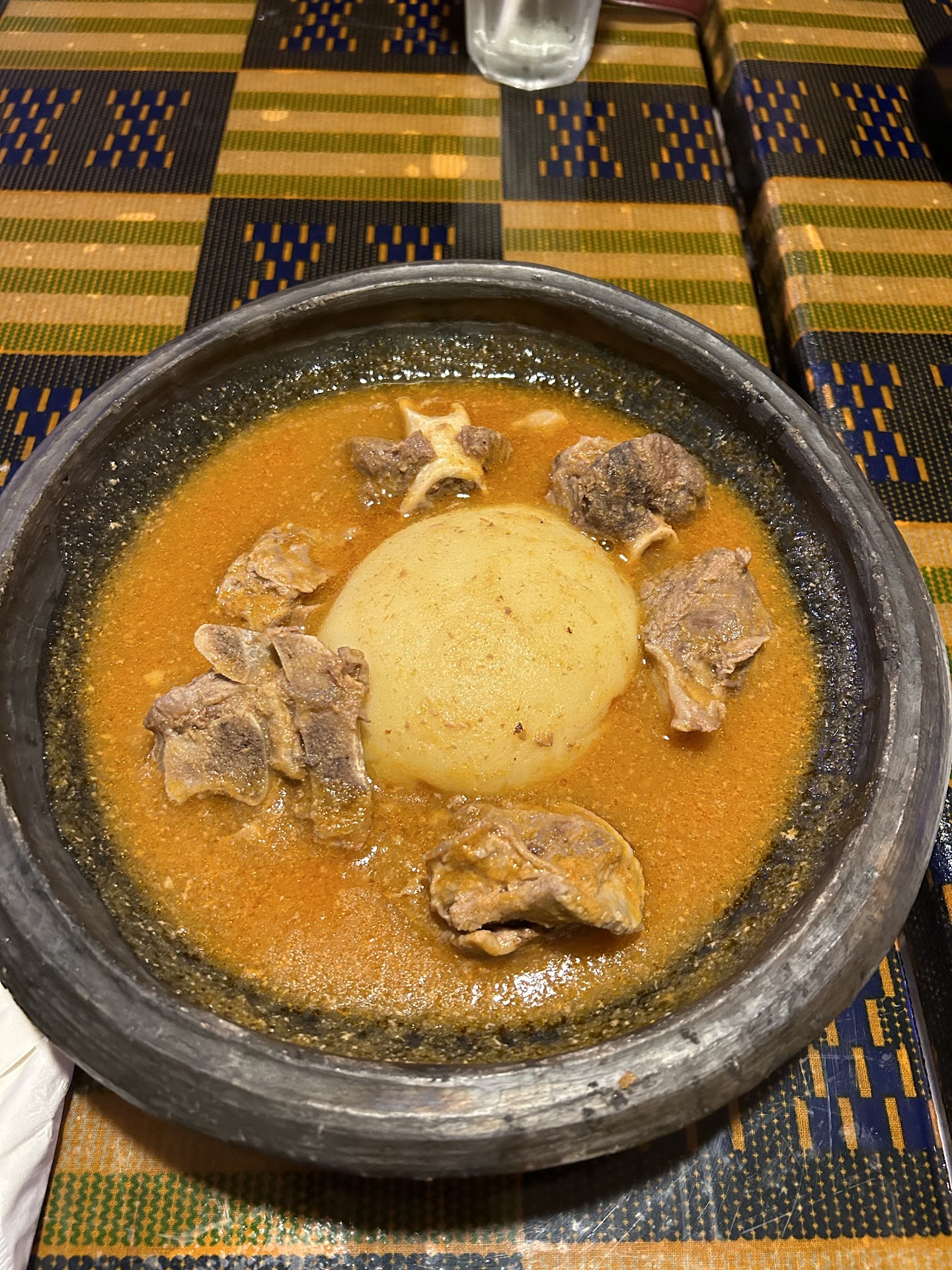 We came here today looking forward to authentic Ghanian food as the reviews were 4 stars we ordered Fufu with Goat soup and Yam and Spinach Stew.