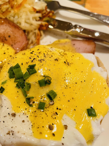 We decided to order up some corn bread and what a unique presentation. Reality absolutely superceded our expectations when we were presented with a slice of bread which was perfectly soft and crispy, adequelately sweet, and paired with a portion of cranberry sauce and smoked ham. Very satisfying!