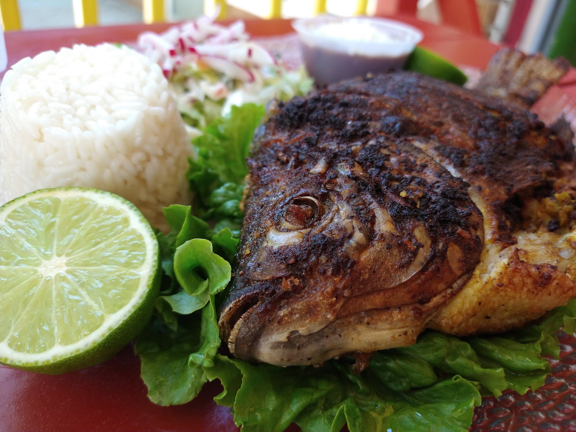 Cuando llegamos al local, lo primero que pudimos ver es que en la entrada había un Caballero tomado o sea medio ebrio, sentado en unas de las mesas del area exterior del establecimiento las cuales son para el uso de los clientes.