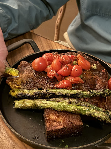 Eventually, she found a “solution,” which turned out to be premade potatoes. They were disgusting. My steak was flavorless and topped with a mountain of stewed tomatoes. To make matters worse, when the server brought steak knives, he gave one of my guests a steak knife for chicken and casually mentioned the chicken “might be a little tough.” Who says that?