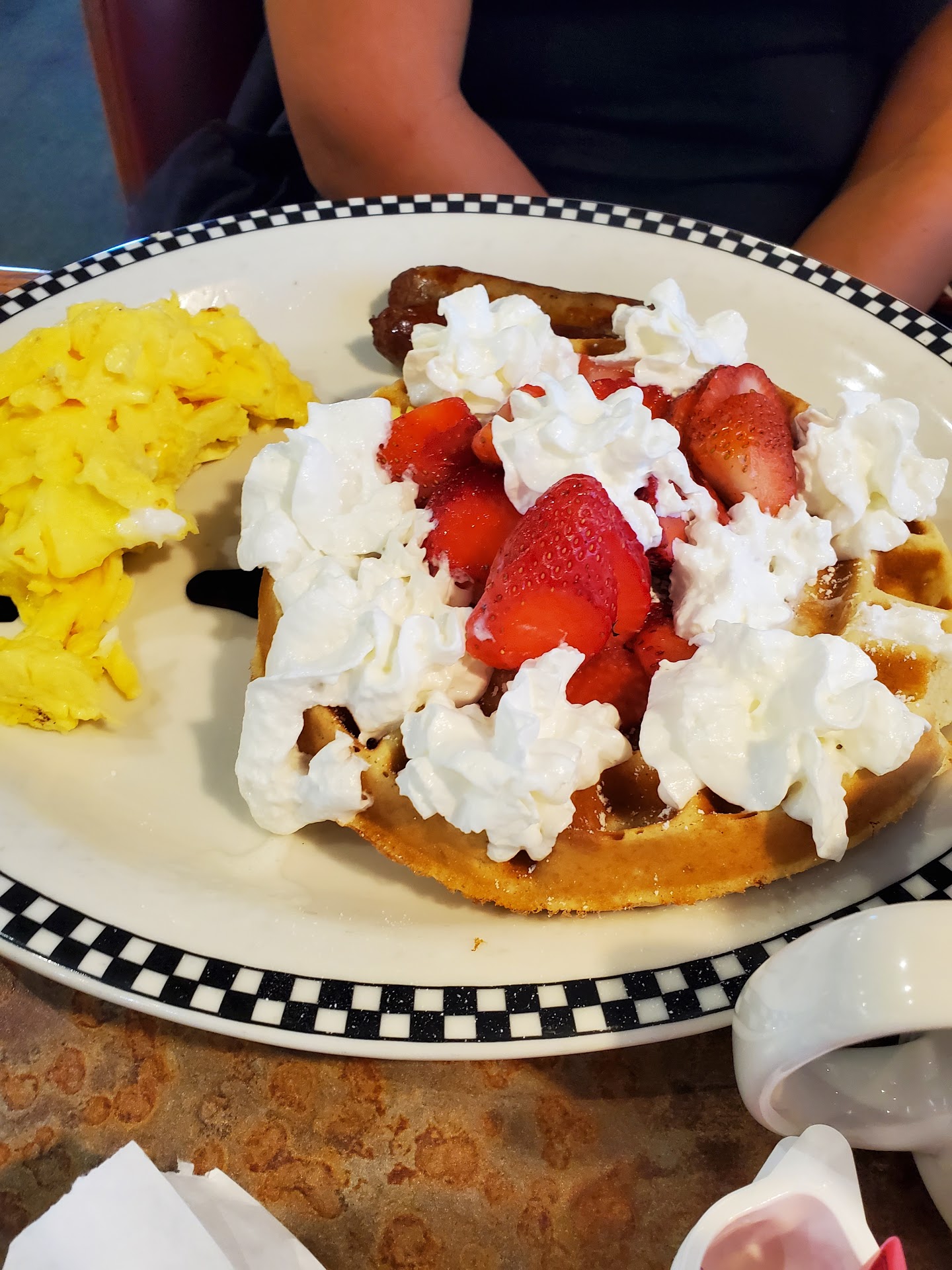 They also serve actual fresh-squeezed (in-house!) orange juice, which is SO good! The biscuit was as big as a softball, so don't worry about only seeing one biscuit listed - it's definitely no Pillsbury tube biscuit! And the sweet cream pancakes? Heavenly!! I think they'd have been somehow even better with the fruit and whipped cream option 🤤