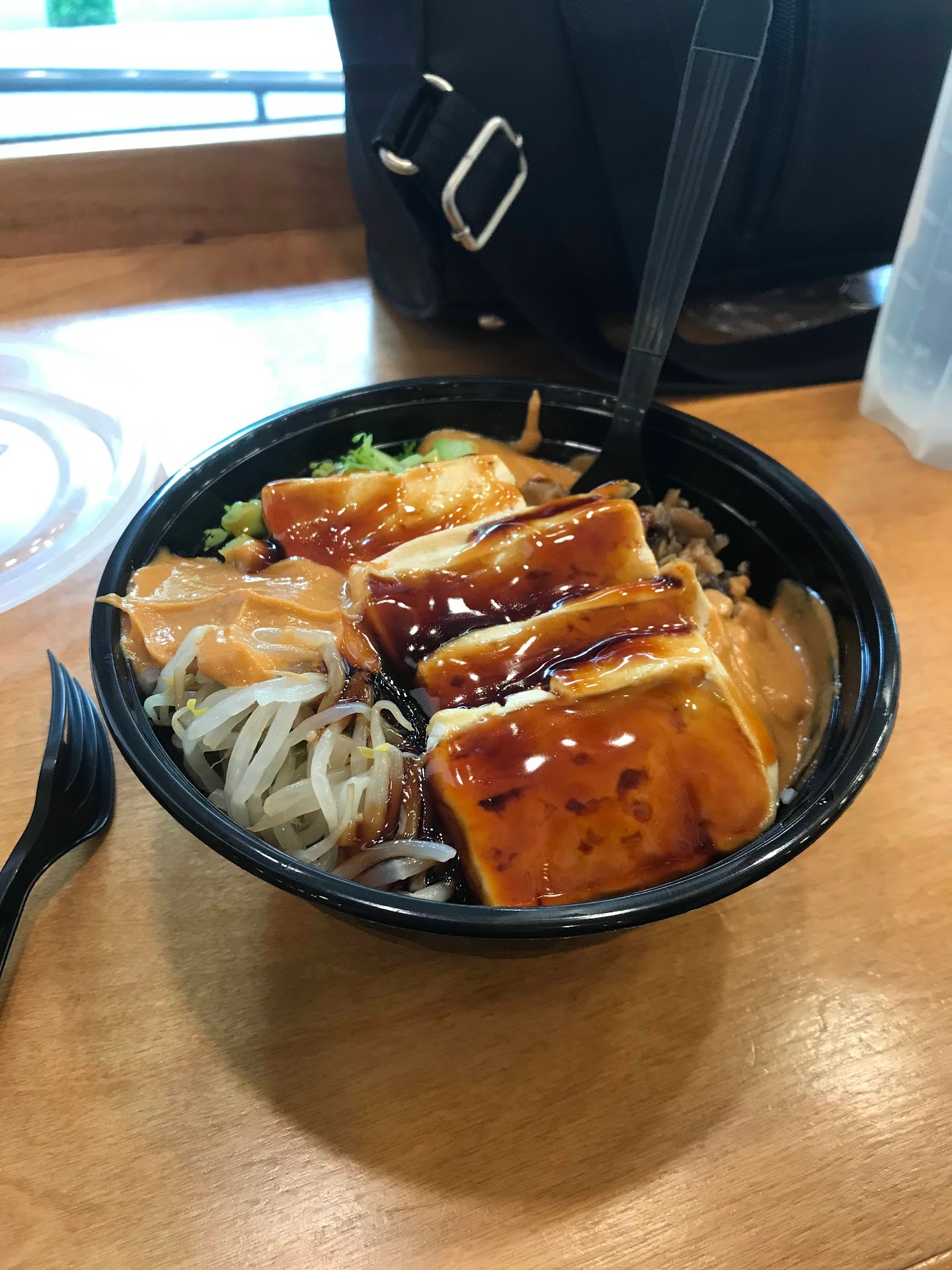 Still I must admit in spite of this the bowl tasted good and I enjoyed it which is why I gave this restaurant 3 stars. My tofu, brown rice, cucumbers 🥒, zucchini, kale 🥬, broccoli bowl 🥦 with spicy sauce 🌶️ , sesame oil and another sauce hit...