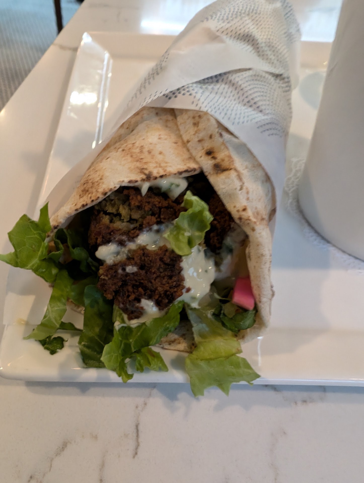 Went there with my family and instantly loved the vibe of the place. We were greeted by the Bartender Chris that night and from that point on, his attention to detail and service were just spectacular! He immediately paid attention to us having a child with us and steered us to suggestions that would work for a child while also giving us great suggestions on food and drink. The drinks were great - I got a Paloma riff and enjoyed it, wife got a vodka drink and said it was good too. The food - possibly some of the best Mediterranean food I have had in the US, it really has no business being as good as it is - the chicken was super tender and flavorful and everything was seasoned to perfection. The toum was sublime and to the point that we talked so much about it that Chris got us a bunch to go. Desserts were amazing, the Bakhlava was just crunchy and sweet enough and the chocolate dish was great too.