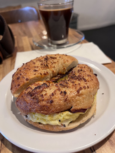 Been coming here almost every Sunday for the last few months for a coffee and bagel, and there's a reason I keep coming back. The owner and staff are so passionate about this place and it shows. The bagels are bullfrog bagels, which are solid, but the true treasure is the lox. They prepare the lox chopped up fine (which gives it a lovely texture) and and the sandwich comes with cream cheese, dill, very elegantly sliced red onion, and, very importantly, not too many capers. The drip coffee is great and the espresso is solid as well, with many types of alternative milks (my go to is oat milk). The ambiance is also wonderful. Many plants, including fresh basil growing in the window booth. The owner's own artwork is on the walls and he will happily chat with you about it. I've seen his sister and his uncle come in a few times, which is very sweet. He also truly cares about the neighborhood and treats everyone with respect. A...