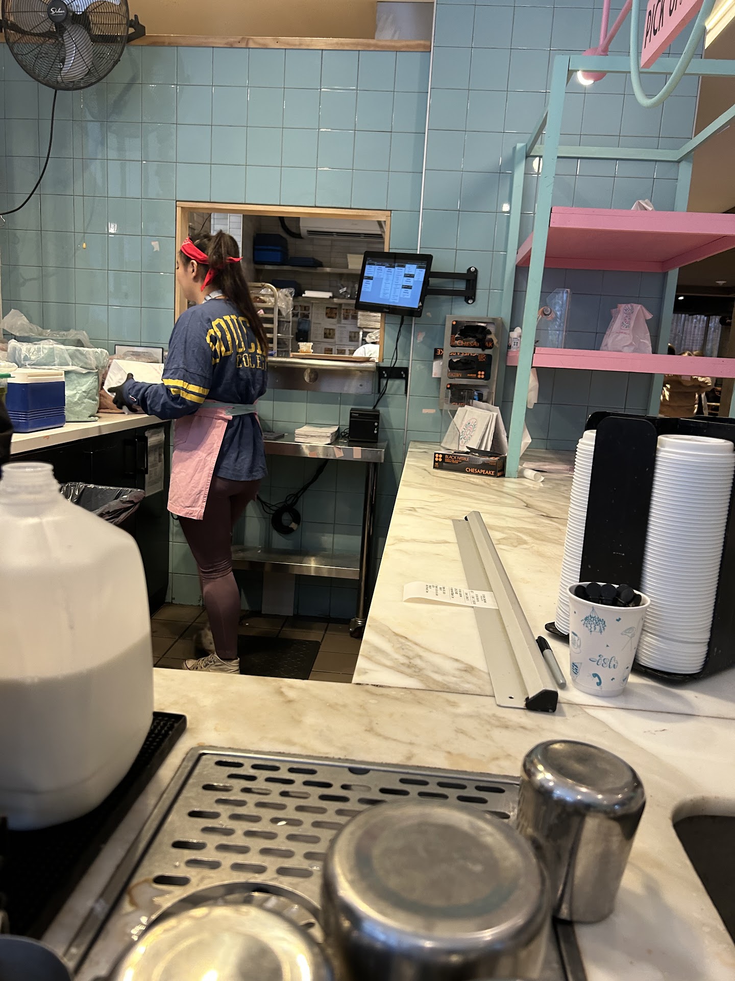 Read moreIn DC for just a few days. Thank GOD we found this place. 1 The cheese from my sandwich actually melted INTO my bagel! INTO! REAL! 2 We walked SO MANY miles and this strong, amazing coffee, and powerful food, fueled us. 3 There's room to sit. PLENTY of room to sit. You will sit with your friends and hear each other talk over the absolutely awesome background music and other customers. 4 People watching is GOLD! Everyone is here: the hippies, the LGBTQ+ squad, the trust fund college kids and their parents, the bros after their workouts, the young couples with their little kids, everyone! 5 And yes, when you bite a bagel sandwich, the insides sliiiiides out. It's GOING to happen. They have knives and forks. Let it sit for three minutes and slice it up if you want. Or, just wallow in the glory! 6 And the coffee. There was a place less than a block from the condo we rented. On day four we were thinking, "Let's try it out..." but we didn't because we just could NOT trust the coffee to come even close! 7 Yes, there's a tatte right around the corner. You can go there. it's good, but it's not this good. Go...