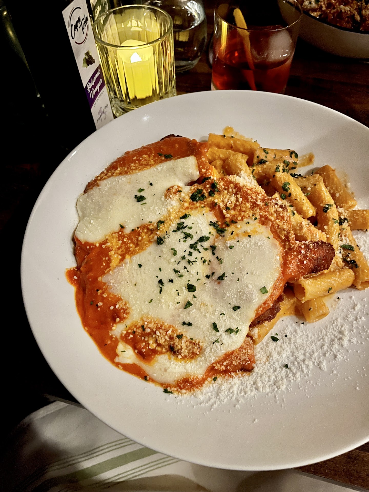 My mom was also disappointed with her Chicken Marsala and said although the chicken was cooked well, the dish lacked flavor, even with extra Marsala sauce. My partner and dad were pleased with their Chicken Parms and thought they were excellent, which jives with the other reviews - hence why I think this is the only dish I’d recommend. It also comes with a vodka sauce — when I had bites of my partner’s pasta that came with his chicken parm, this sauce was much better than my San Marzano tomato sauce.