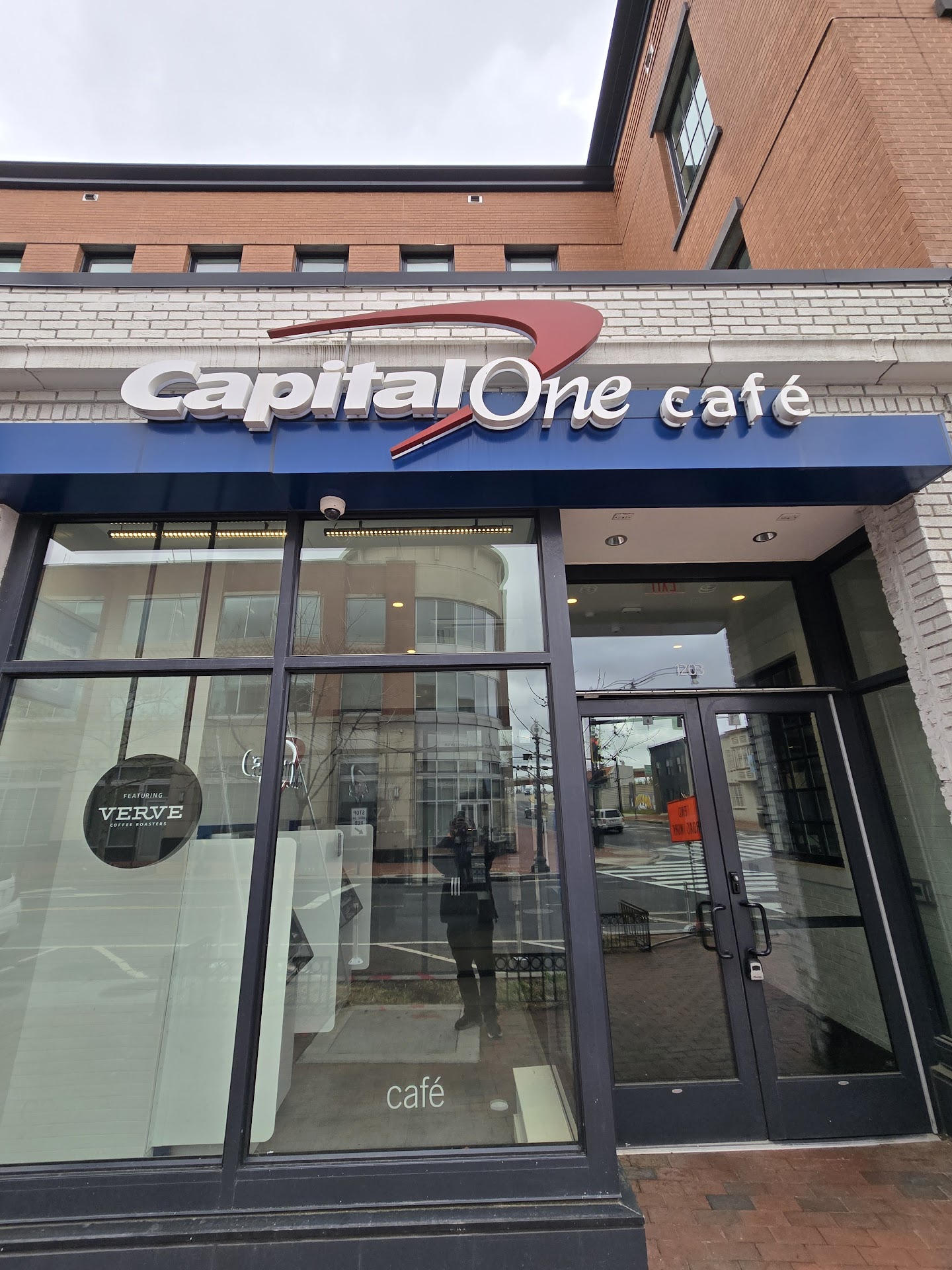 Space: Located on the first level of new development, the space is new. When you walk in, you pass two Capital One ATMs. Open two more glass doors to enter the cafe. It's set up like a Peet's coffee shop with a large open industrial room with plenty of tables, each with outlets. It's well-kept and inviting.