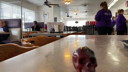 Talk about an American Cultural Epicenter! Smack in the middle of a barren food wasteland (with the exception of the great tamale place across the street) yet accessible from almost everywhere we pass Carol's Corner on the way to almost everything. Their paring lot is huge, yet when I pull in, the place is obviously packed! I park way in the back thinking there's no way the owners of all these cars can fit fit into this one place. But when I get to the main entrance, it's like the Tardis, much bigger inside than outside. The place is jumping, yet I am seated and served promptly and with friendly efficiency.