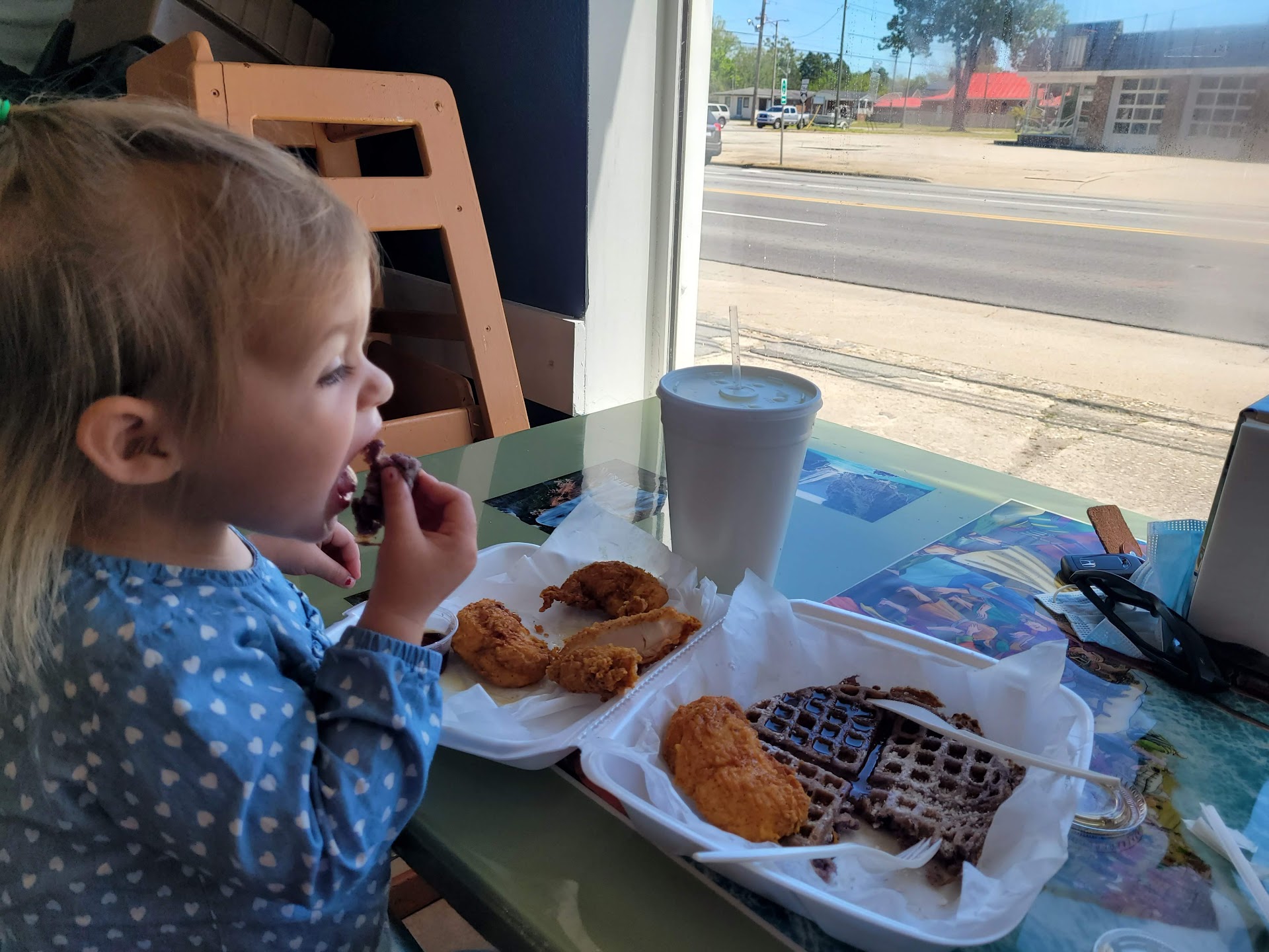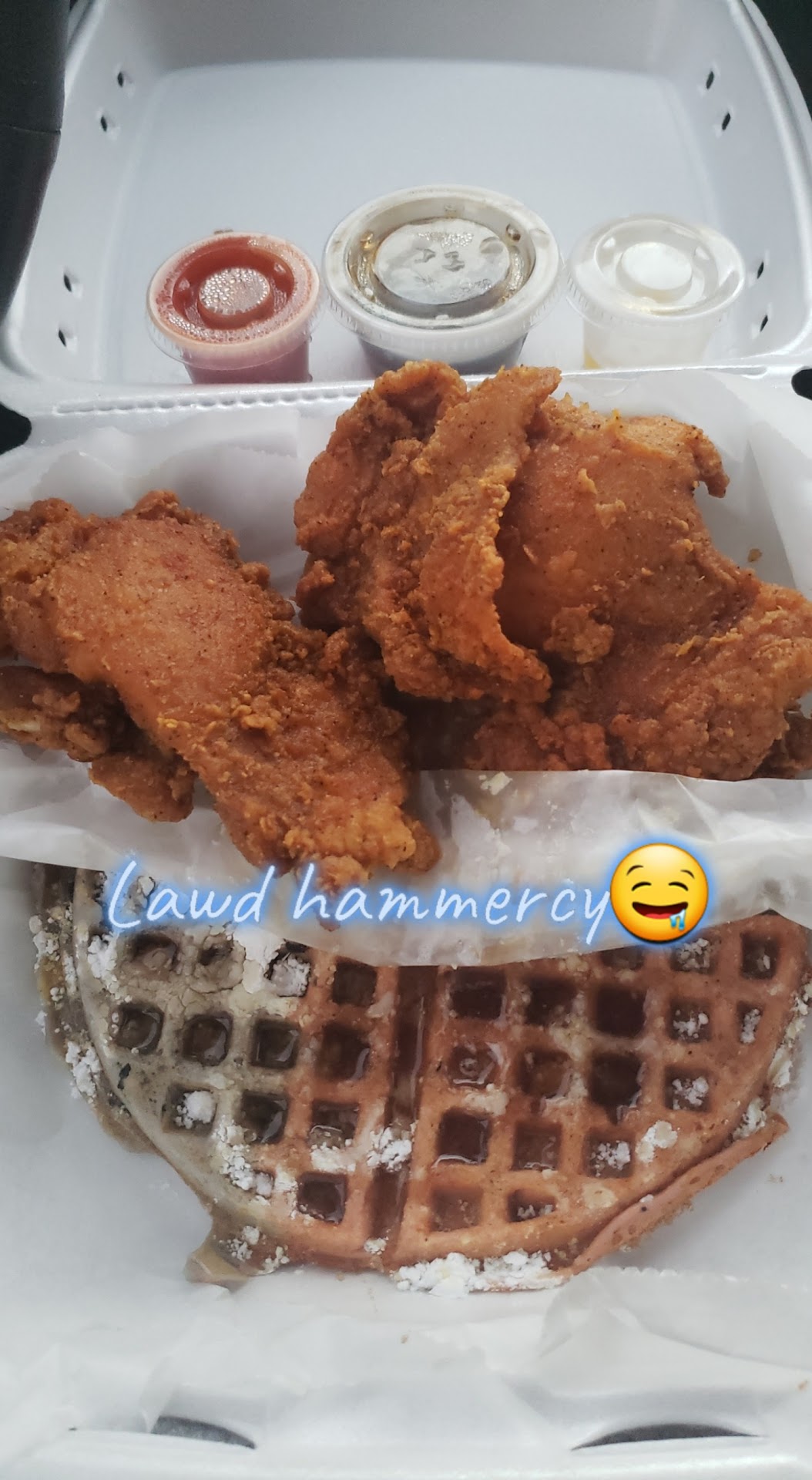 Read moreEvery chance I get, I try tp support them. This is the BEST chicken and waffles I have ever tasted in my life. The chicken tenders are cooked to perfection with love in each bite. The waffles are the best EVER!! I have tried the red velvet and the blueberry and they are the best...
