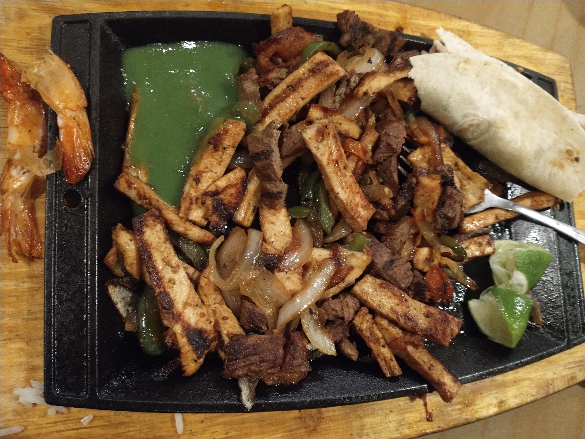 Totally recommended latinamerican food. The servers don't speak English though. I had to help my friends with the orders. I liked so much the taste that I returned the next day for the same dish... The "parrillada mixta", or as it's commonly called "cielo, mar y tierra". Practically beef, chicken and shrimp fajitas that are extremely well seasoned. The individual tacos and gorditas are really good too and they have La Anita green habanero sauce which is a plus. I...