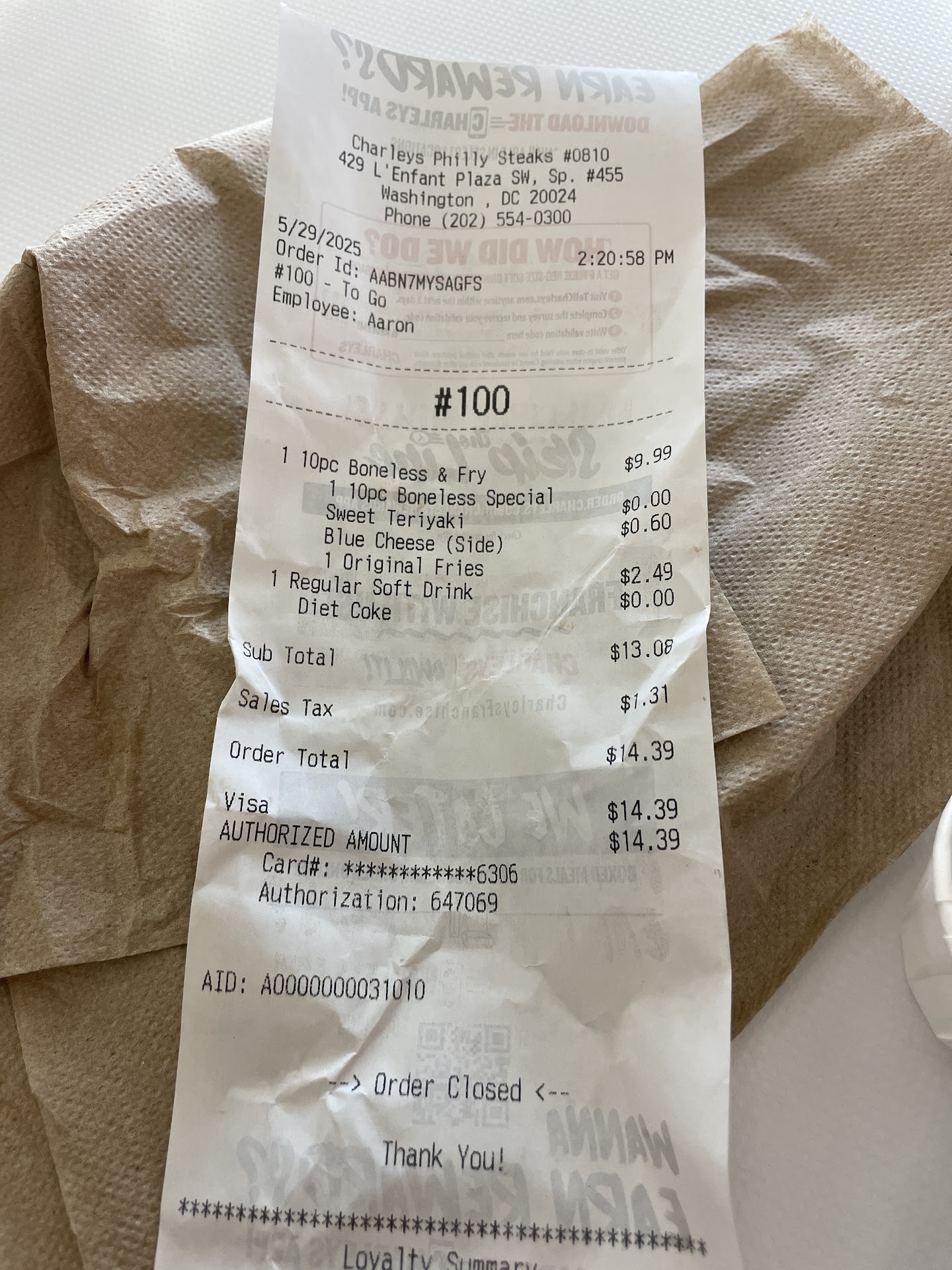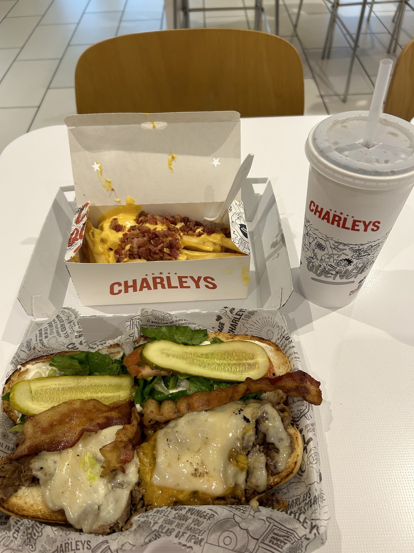 Read moreI am highly disappointed in this location. I actually used to love Charley's in Florida, where I was first exposed to this brand. But then coming to DC, to see it was here, was awesome, until....... I actually had the food from your location here. The cashier, she was awesome. But moving on to my food. For $20, I received some overpriced, stale fries, a bland chicken cheese steak and horrible customer service from the cooks. The bacon was basically raw. And when I asked for teriyaki sauce on my meat, he basically said you can wait and I will put it on top. So when I said no, I want it on my meat, he got even more mad and acted like I was inconveniencing him. My sandwich tastes so bad and I am so mad that I spent this much money and most of it will go in the trash. Fried onions, I can see them but there is no taste, whatsoever. I'm so disappointed in the quality of food. I can see ranch, but taste no ranch, and no I am not having issues tasting because the strawberry lemonade is the only awesome...