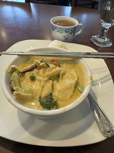 Read moreI found this little gem by accident. It’s tucked away in the back of the strip mall area so you wouldn’t know it’s there from the main street. The food was outstanding and the service was great The green chicken curry was delicious and very warming on a cool day. The heat level by stars was perfectly as described by the server and except what I was looking for. Based on the modest price I was pleasantly surprised by the generous portion. This is definitely not going to break the bank and you will not leave hungry by any means. There were several people picking up food to-go and calls coming in for orders while I was there around 3:00pm. I’m guessing the majority of their customers are returning. The atmosphere is much like you would expect in a strip mall, nothing fancy, but seemed clean. (I do wish the back area and restroom were as clean. It only takes two minutes to clean the cooler doors and a clean restroom is a sign of a clean restaurant, people!) Because of the flavors, price and service I will definitely make a point to stop back in again next time I’m...