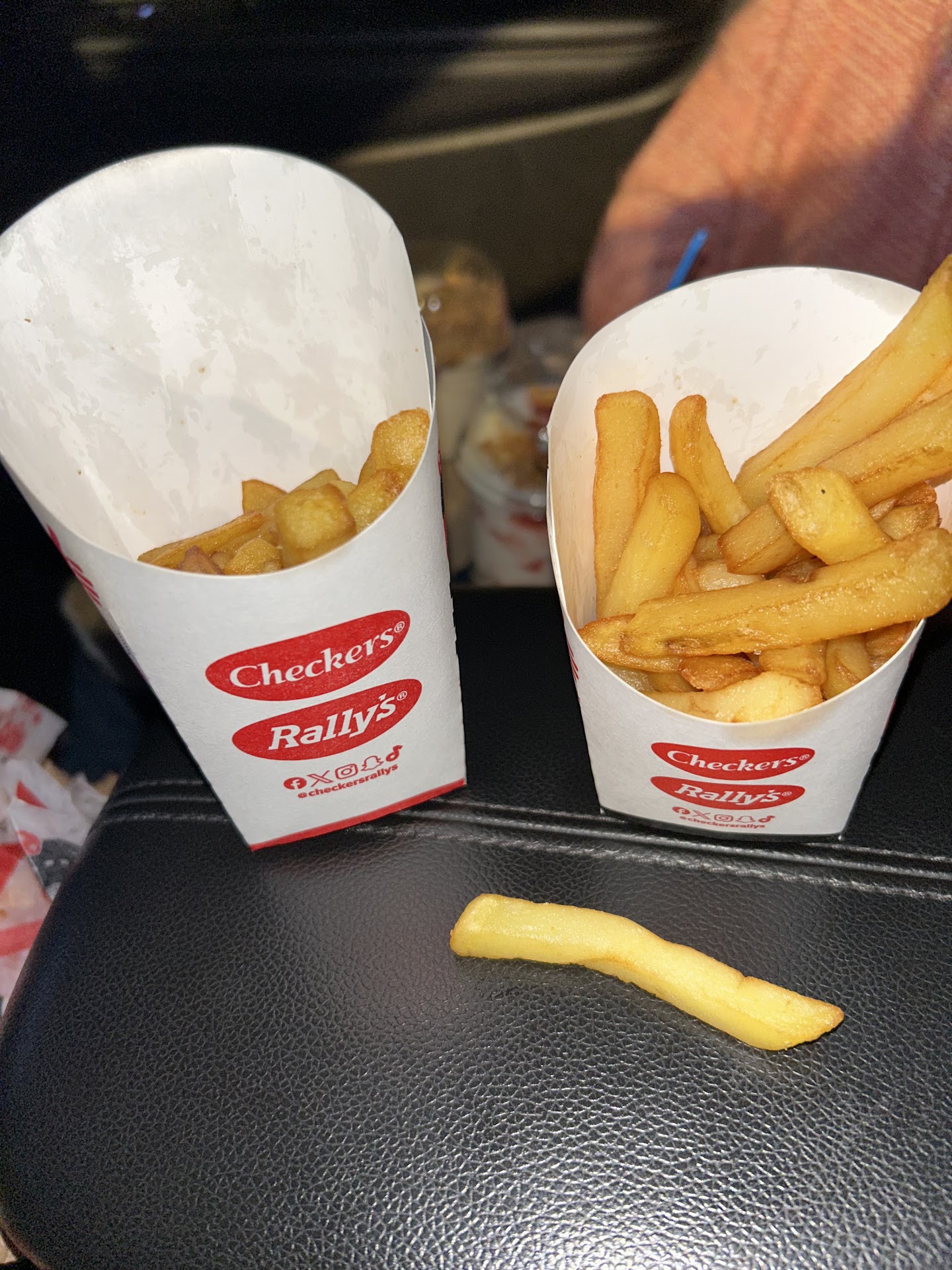 Read moreFirstly, I didn't order food, I was the driver. On a Fri night, it took 30 mins to get through this drive thru--while BOTH lanes were open. My girl ordered a fully loaded fry and a 10pc garlic parm wings. From start to finish, this was by far the worst visit to any checkers I've ever visited. At this point, it should be expected that the "let out" crowd is coming to this location after going to nearby clubs....but apparently the staff/management hasn't figured that out. There were at least FIVE men working, and with the given menu, I don't understand how it can be this hard to keep both lines moving. 10-15mins at the max, but 30? For a fry and some chicken wings? Lol The guy who took the order over the mic was totally lacking in customer service, from start to finish. He denied my passenger's request for a 5pc wing "bc they are trying to get rid of 10pcs"..... Imma leave it at that for now. Somebody shared similar complaints 4 months ago, and it looks like nothing has changed...giving 2 stars bc the food did smell good, I hope...