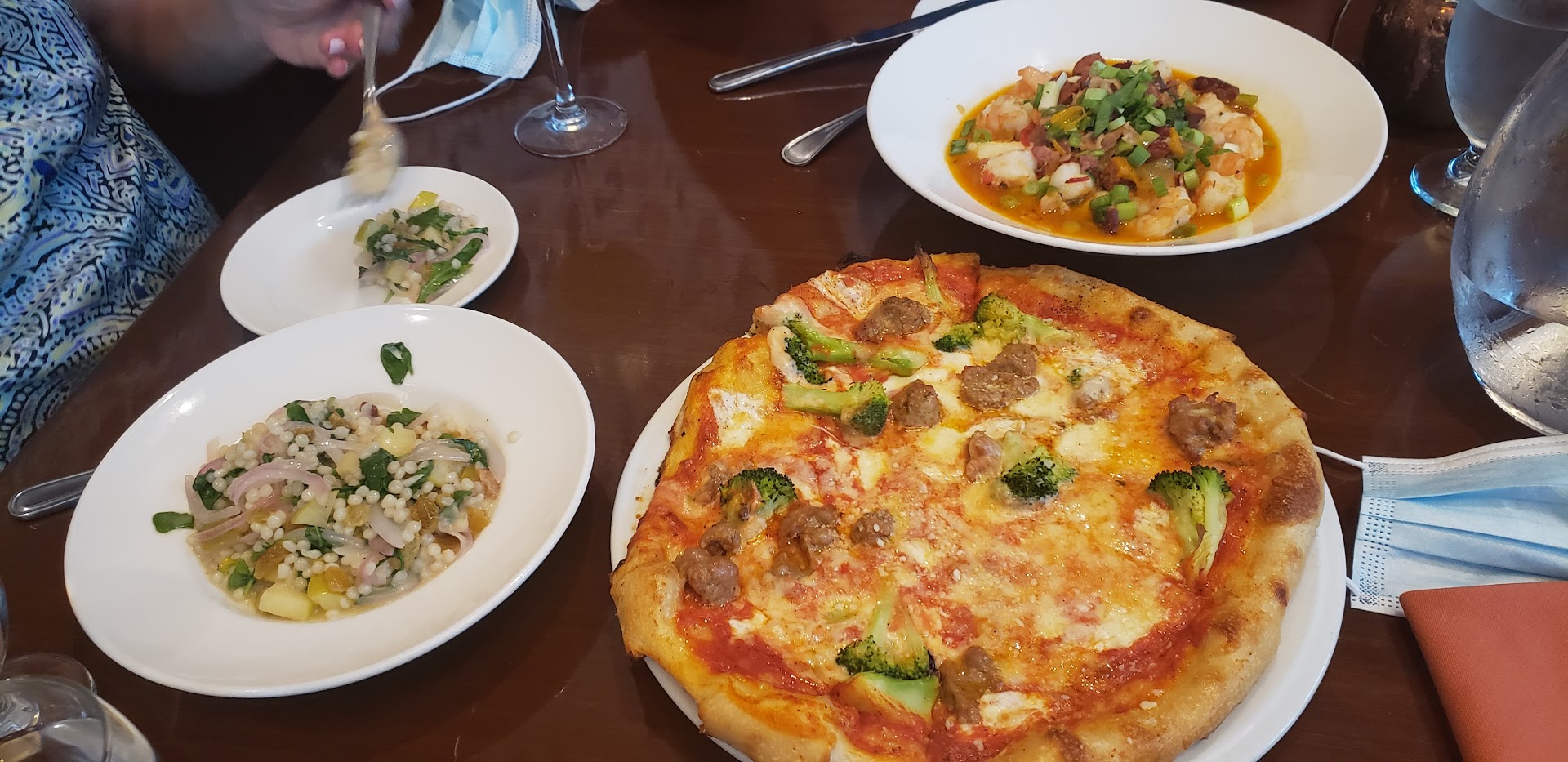 Where do I Begin? First off, I'm from NYC, and There you can get Every Kind & Culture of food Under the sun..but I Must say, the quality is honestly extremely diluted and "hit-or-miss" due to both the high demand and, admittedly, easily contented demographic that focus's much more on convenience/speed than anything else. When I recently had dinner with my boss and his wife here at the M St location, who btw are By Far Much more Cultured and Traveled than I, having experienced cuisine from countless states and countries all over the world of almost equal caliber of diversity in culture, Their impression Alone of the food here left them speechless during dinner and extremely impressed by the end. Now for My impression; I have Yet to have eaten such Amazing, Quality-Crafted Food under One roof in my life so far, not to mention that I don't believe I've Ever looked at a menu and was actually Captivated by Every Single Item on it! The Starters, the Entrees, the Pizzas, the Sides, the Salads, even the Drinks! The description of absolutely Everything On there looked Intriguingly Delicious! That being said we actually took quite a while to make our decisions, ultimately ending up deciding to split 4 different plates to share amongst ourselves; fresh, crispy Calamari for a starter/appetizer, a generously-sized Viva Italia personal pizza, Shrimp & Grits for an entree, and their apple, arugula, raisin, and finely sliced & tender red onion Couscous as a side. We We're Blown AWAY!! Literally going from having a lively conversation to just quietly, Blissfully, and in pleasant surprise Thoroughly enjoying Every! Single! Bite! The Peachy keen and Limoncello cocktails were later the cherry on top of the whole dining experience, but also not to forget the exceptional and lovely service we received from our server. Today, the following day, before my 5hr trip back to NY I HAD to order another Shrimp & Grits to go (which btw was personally my first time having anything like it) to share the memorably, absolutely delectable taste of it with my partner waiting for me at home. My/our Highest Compliments to the Chefs in the back-of-house, whom I can literally Taste the exceptional Skill and Art behind each bite I experienced there; the Wait-staff who were all Very accommodating every step from the front door, to our seats, to the end of our service, and to the General Mgr who was also Very polite and humbled at hearing how much we enjoyed our experience and was intent on sharing the praise with his team, as he also agreed is well-deserved. Thank you again for a Lovely and Surprisingly memorable dining experience, and I truly hope to return there asap, with lucky...