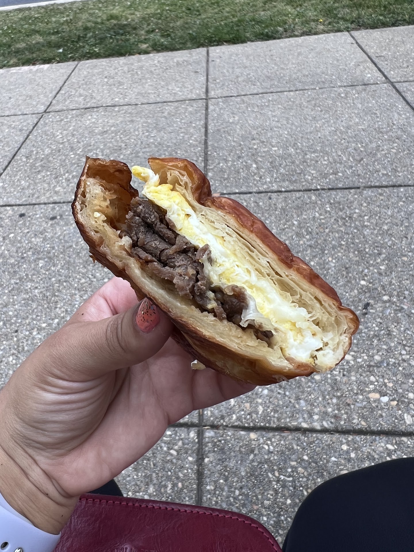 It's a small coffee shop with a few tables and chairs, but their menu is pretty expansive. Along with typical coffee and sandwich menu, they serve Korean inspired dishes like rice bowls and bulgogi quesadillas. I was overwhelmed with the menu and my indecisiveness led me to order a Commuter Breakfast Sandwich, bacon, egg, cheese, and tomato on a croissant. It wasn't a bad sandwich, just a little small and flat. I wish I had ordered something more creative. I also ordered the Ghirardelli latte and received it in a big mug with a bunny rabbit art. It was so cute that I didn't want to kill it, but I had to and it was delicious!