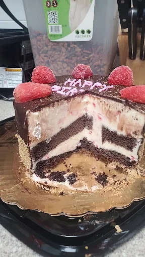 2/5 stars. I did a custom ice cream cake, the smallest size. The workers forgot the caramel filling and the piping isn't the best handwriting, the piping makes the cake look more homemade than if I paid a company, but I did pay a company, so I'm a little disappointed. The cake itself is good, the "cheesecake ice cream" tasted like vanilla, not cheesecake. Apple pie mix in saved the cake, best thing about this cake, but I wish I had more of that mix in.
