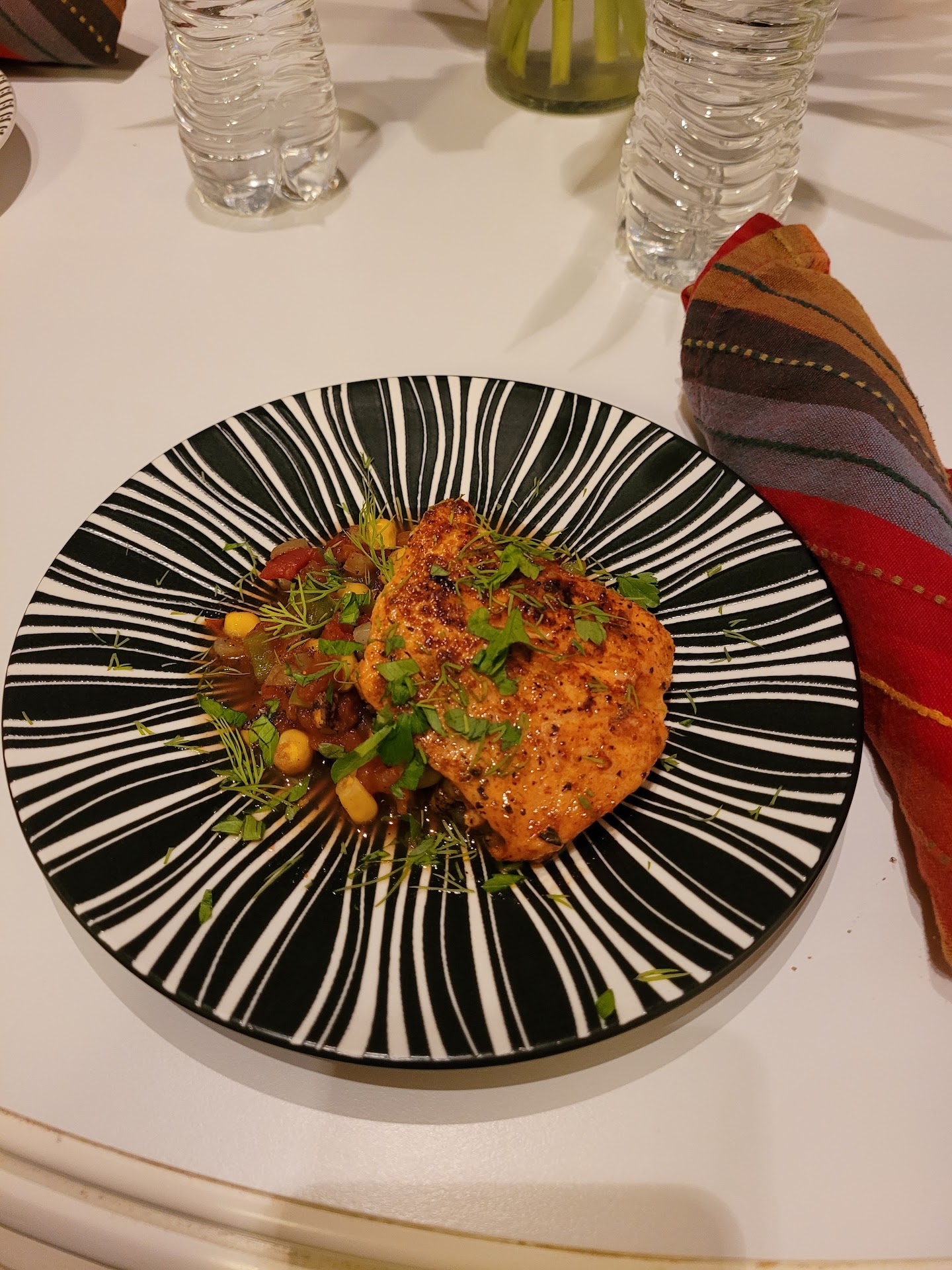 We had a bit of a snafu in that I ended up suffering from a stomach bug on the night of our dinner, which Meg still graciously made for my boyfriend and saved me some for when I was feeling better. My absence was no hinderance, though, as he still had a great time and delicious meal (Duck, Duck, Mousse, by the way). However, Meg in all her awesomeness reached out the next day and subsequent days to inquire how I was feeling, and we were ultimately able to reschedule a time to do our dinner in full, this time at her place. She and sous chef Doug (he's a dog, and he's the best) gave us one of the best meals of my life, made exceptional by her humor, wit, cooking skills, and relatable food (and life) tips.
