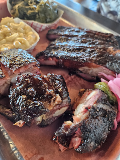Read moreI went here with my Mom for a very late lunch. I asked for recommendations and tried The Garland sandwich (pulled pork, KC Sweet BBQ Sauce, homemade sour dill pickle, and shaved red onion) with baked beans. My Mom ordered ribs with potato salad. I had only eaten leftovers from here before when my husband and son had gone. The food was good but this time it was much better. The flavor was rich, The meat was tender and had just enough BBQ Sauce to give it flavor, the pickle and onion complimented the pork nicely by offering contrasting textures and flavors; Sweet, savory, a little tangy, soft and a little crunchy with the onions and pickle. I decided to add the interesting green North Carolina mustard sitting there in the condiment basket on the table, and I was not disappointed. It added more tangy goodness without too much sour. It complimented the BBQ without taking over. The beans were solid. They weren't super sweet or overly smoky. They were nice. I tried the potato salad, and I thought that it was well made. Usually, I am super picky with potato salad and prefer my families recipe to all others so far. This one was different enough not to directly compete. The flavors were very appealing. Everything tasted amazing to me. The potato salad tasted more soohisticated than one from a backyard picnic. My husband's personal review had been less stellar than my experience, I half wondered if his taste buds were dulled by his seasonal allergies. We also tried the banana pudding. This was my first time having it. The texture was very smooth. The flavor was yummy. The banana flavor wasn't overwhelming like a banana cream pie. It reminded me of bread pudding, so I would venture to say it is probably exactly what banana pudding is meant to taste like. It tasted like it was designed by a chef. The sandwhiches were designed with ingredients that go well together, not just a random little eatery with filling homemade food that is good and common. The flavor combinations are intentional. I think the one suggestion I would recommend with ordering off the meat menu is to be sure to add sides to balance the meal. Eating only off the meat menu may be almost too rich. It is best paired with complimenting side dishes, in my opinion. This lunch was definitely a treat for my tastebuds, and I...