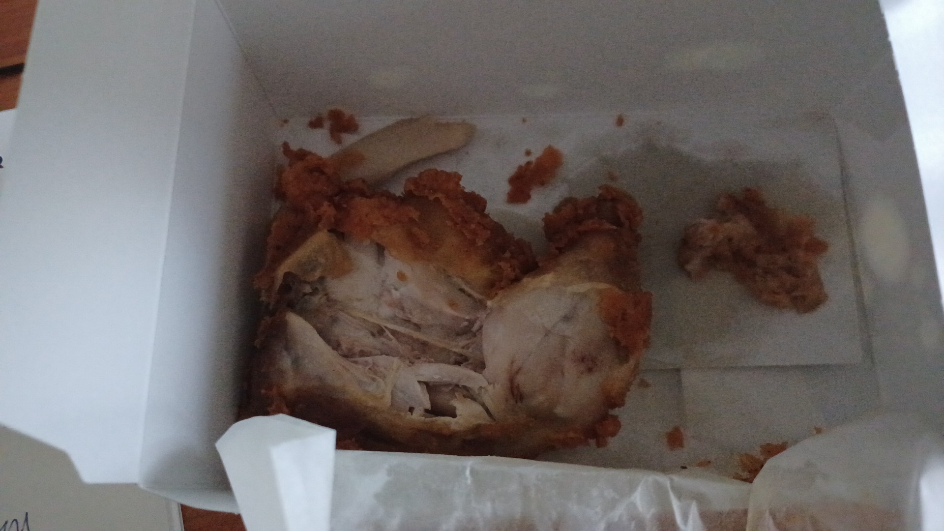 The chicken...tasted like death itself. I honestly don't know if that was chicken I took a bite of...seriously! The taste lingered in my soul for half an hour and I spit it out after one chew. If I hadn't already taken it home I would have taken it back. I would not order from there again as long as Earth spins on its axis. I would rather take my chances with Popeyes and their rat colony. Maybe they had a terrible day, because I don't know how they could stay in business with food that tastes like that, but I just know I'm not going back there unless I'm the Uber driver for the DC...