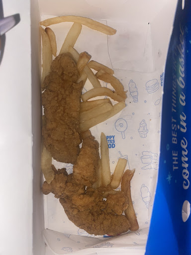 I placed a mobile order & arrived 3 minutes before the estimated time for pickup. I went through the drive through as I currently have Covid. With 5 cars ahead, I let them know that I had a mobile order. The worker states that I just placed the order and it wasn’t done, I would have to come in. She kept repeating it was a large order. My order is always similar & never had this issue. It was 7 meal deals. 2 cheeseburgers & fries & 5 chicken strips with fries. I asked if it would be done by the time estimated, she said no. I said well can you cancel the order? She said “you’ll have to do that yourself, we can’t cancel”, well I couldn’t either so after I waited in the drive thru for 20 mins, they wouldn’t serve me there. Again, I’m currently Covid positive & didn’t want to potentially infect other patrons. So I sent my teenagers in. They insisted they get the drinks themselves, odd because I’ve always had my drinks done with a mobile order, otherwise why I did I specify each drink flavor with each meal? Another woman said she waited over 20 mins in the lobby for a single item and wasn’t happy. I finally get the food & this was one of the meals I paid for. There is no excuse other than being petty. The other meals also had what looked like old, overdone fries & looked nothing like the meals we usually receive. Unfortunate this female worker behaved this way, we visit very often & our 4 kids enjoy their DQ trips, I likely won’t visit this location again. If she doesn’t enjoy her job in customer service, I suggest she find...