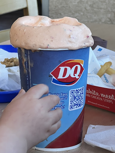Read moreThe ice cream is awesome! As always. I couldn't order anything deep fried because of deep fried popcorn shrimp. The chicken tenders looked good but couldn't get them. The #4 burger was gross. Now this is probably personal taste. The veggies we're poorly cut and haphazardly placed. The meat proportion was off and it didn't taste fresh and the bun was greasy and tasted a lot like cheap white bread, sticking to the roof of my mouth in that gummy way. Also the cheese wasn't melted on. But again that's taste. My lower rating is because of the service. It was a bunch of teenage boys. Not judging by age but they were throwing cups and stuff around, goofing off, seemed annoyed that I was trying to figure out what to order, literally just stared at me while I read the menu. They just seemed disorganized and uncaring. Which I don't blame them but it's a job and you need to fake it in front of customers. The place itself is a little run down but that didn't bother me.