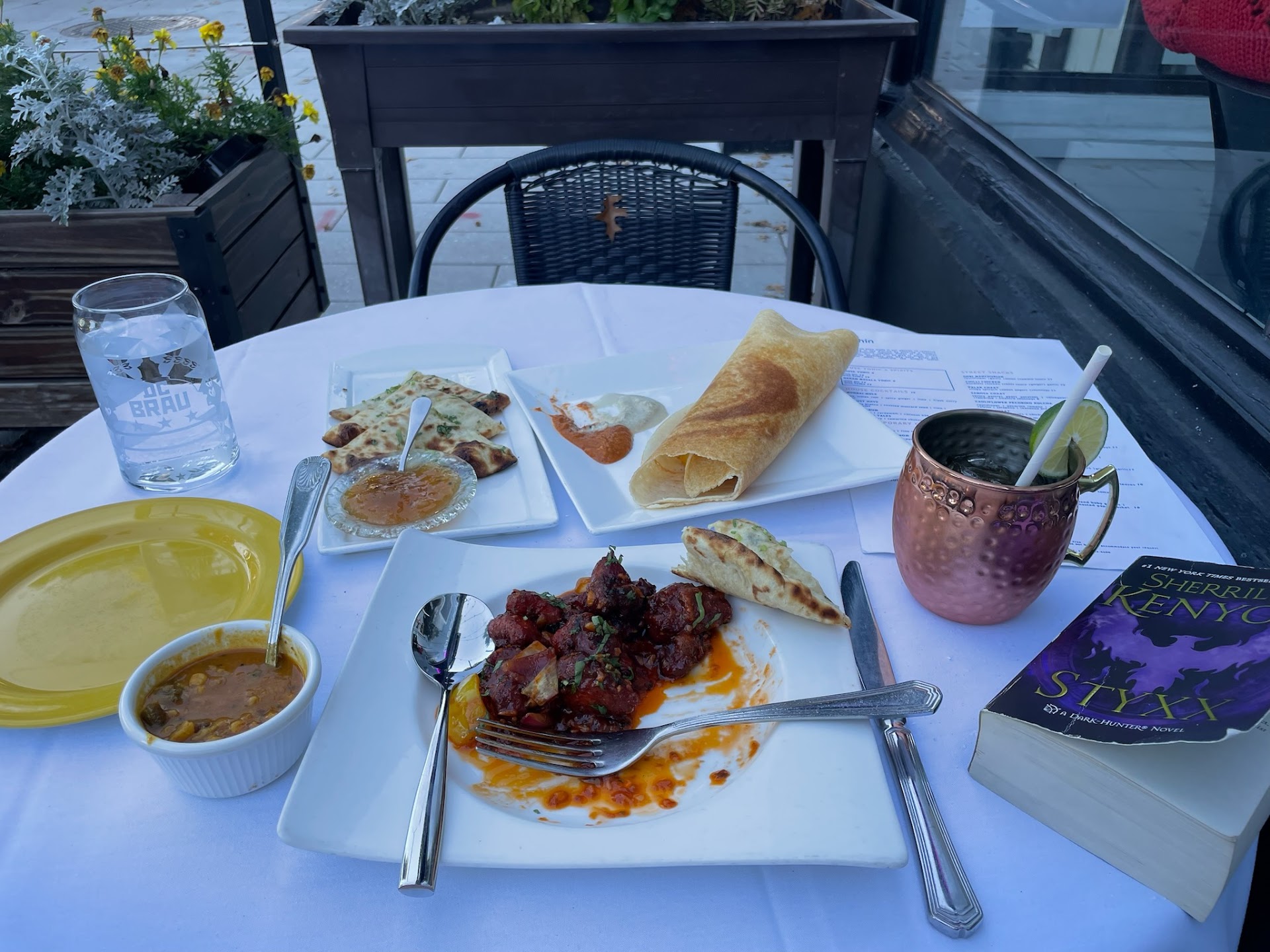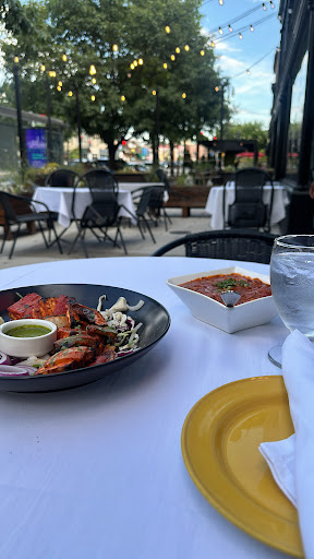 Pro's: The restaurant is in a good location right off the Cleveland Park Metro station. Easy access! Off street parking at 6:45 P.M. was also relatively easy to find compared to other D.C. restaurants. The outdoor seating was plentiful, and the second level outdoor seating was very cute with protection from the rain from overhead awnings. The view of the bustling city below enhanced the experience a great deal. Servers - They were fantastic. Quick to refill water. Great pacing on drinks to appetizers to main course and dessert. Creativity - The meal types are very creative. Indian can get repetitive with a menu that looks like any other Indian restaurant. This had some very creative dishes and combined South Indian culture well.