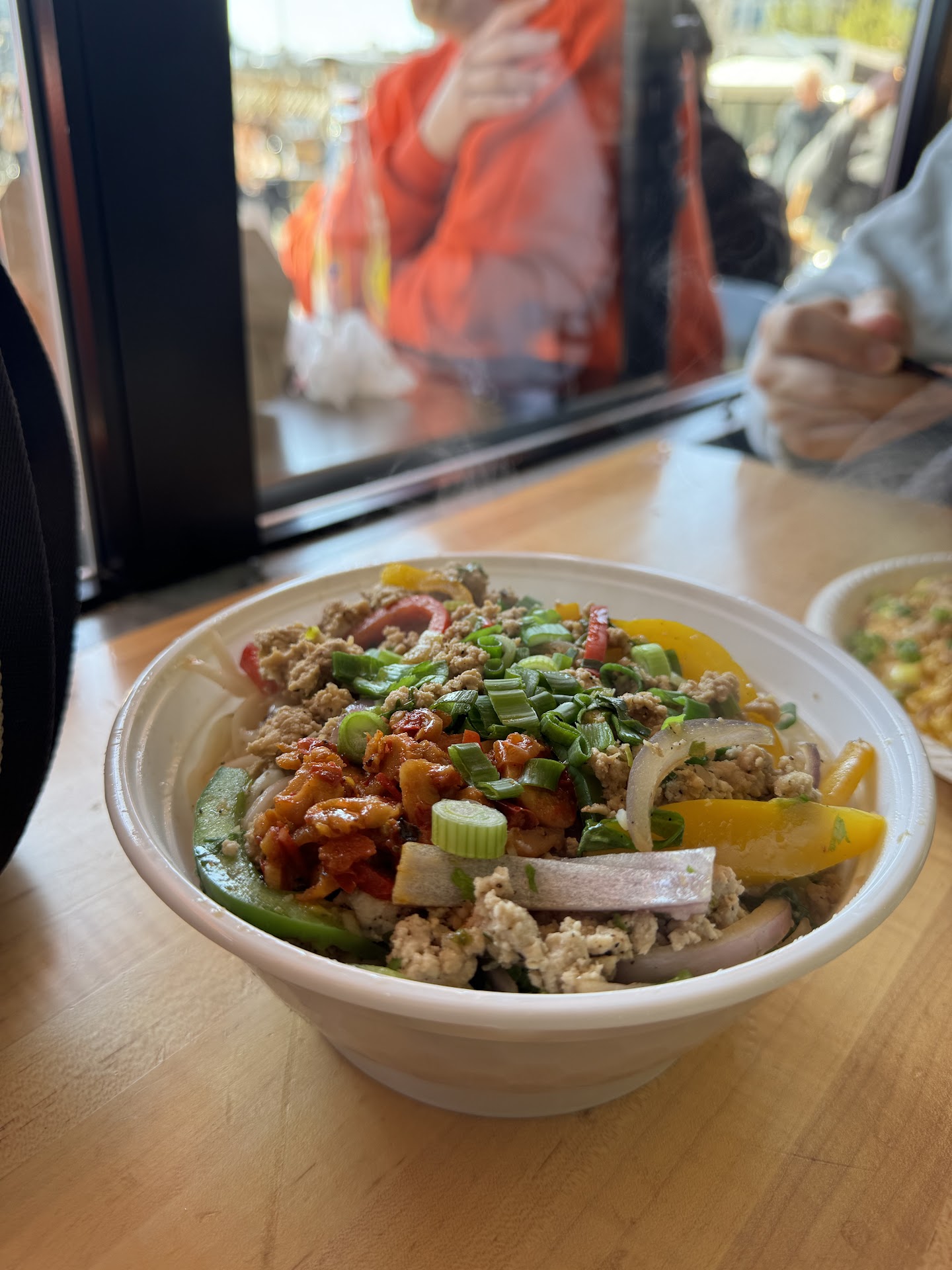 I ordered the hand-drawn noodles with chicken. It was $18 plus tax -- not cheap, but neither is anything at Union Market. It's the holiday season, so I felt generous and tipped. $24 total. No big deal, because I was excited to try the food. The food at least came out very hot, so I'll give them that. What I received was essentially a bowl of soup. I can't even pinpoint what the broth was made of, but it was not traditional, and a complete miss. It had a weird combination of noodles too; not just the wider hand-drawn noodles, but it had what appeared to be spaghetti noodles mixed in. Initially, I thought one or two Dan Dan noodles had gone rogue, but as I continued eating, the ratio of incorrect noodles climbed even higher -- almost intentionally so. Even if they were all the same, they simply were not executed well. The chicken came in large chunks, most of which was somehow extremely dry, even when immersed in a bowl of hot soup. There was also a weird combination of vegetables, and nothing seemed to go together. Very low quality, and would...