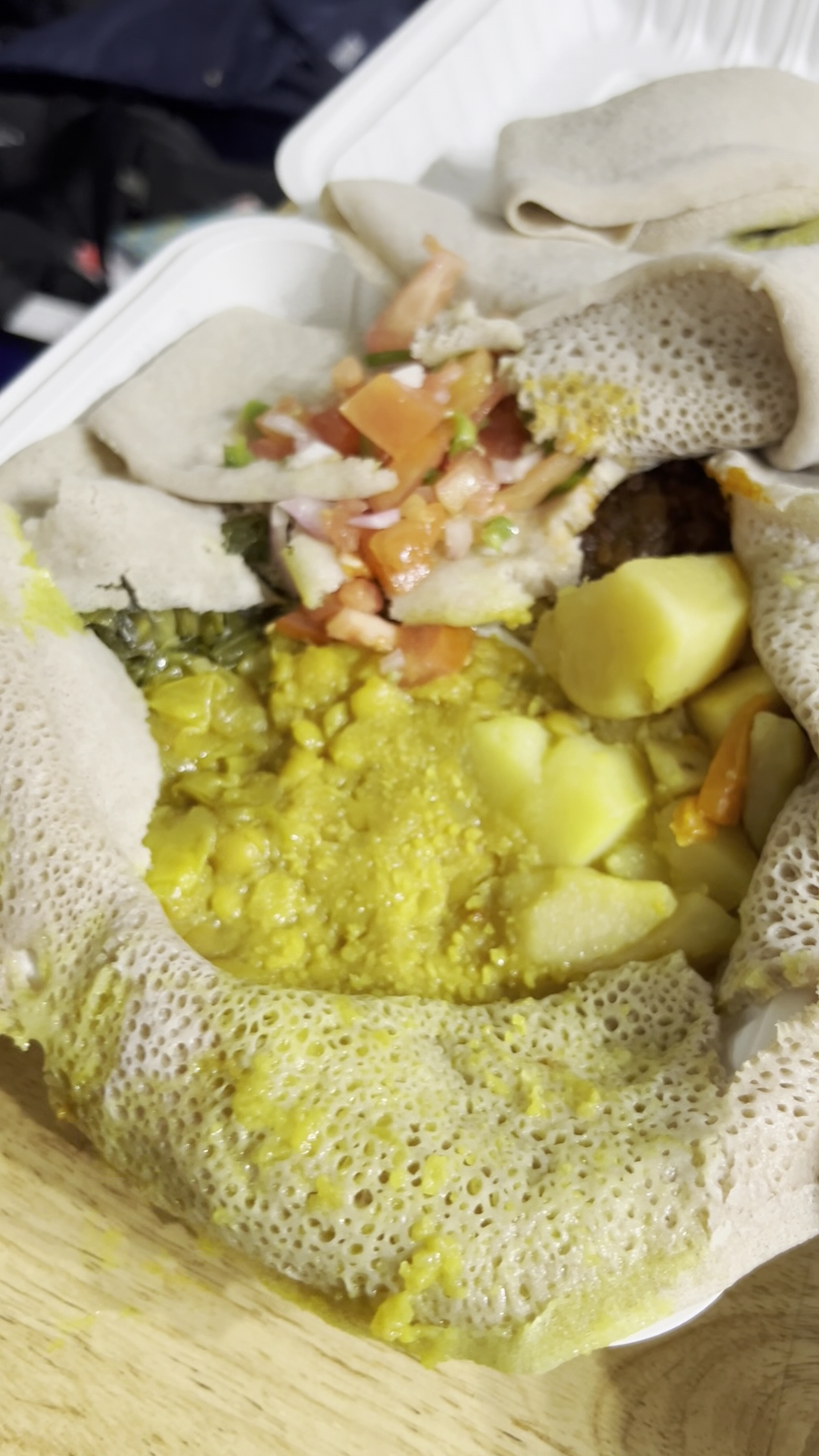 Read moreI stumbled upon this place after checking out several vegan late night options within metro DC and this was one of the few places that was open. I had not had Ethiopian food in a while, so I was excited. I’m glad I went because I was not disappointed because the food was great and tasted fresh, Great size portions for the price and the Injera was amazing. I ordered the vegetarian combination with fried fish. The fish to me was fried just right, it was very well seasoned. I believe one of the veggie dishes was a smashed eggplant and it was definitely one of my favorite parts of the entire meal aside from the fish and the lentils. I ordered my food to go, but inside of the establishment it was clean and the restaurant gave off nice vibes, I would definitely come back for a date night, and or just for Ethiopian food with friends/family because the service was prompt as well. Definitely give them a try if you’re in the area, I can’t wait to go back and try the Doro...