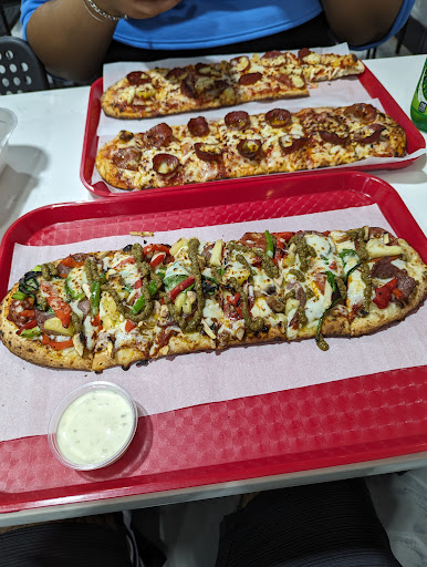 Similar to &Pizza in concept, you get a long and round dough and tell them what toppings you want on it and they assemble and bake it.