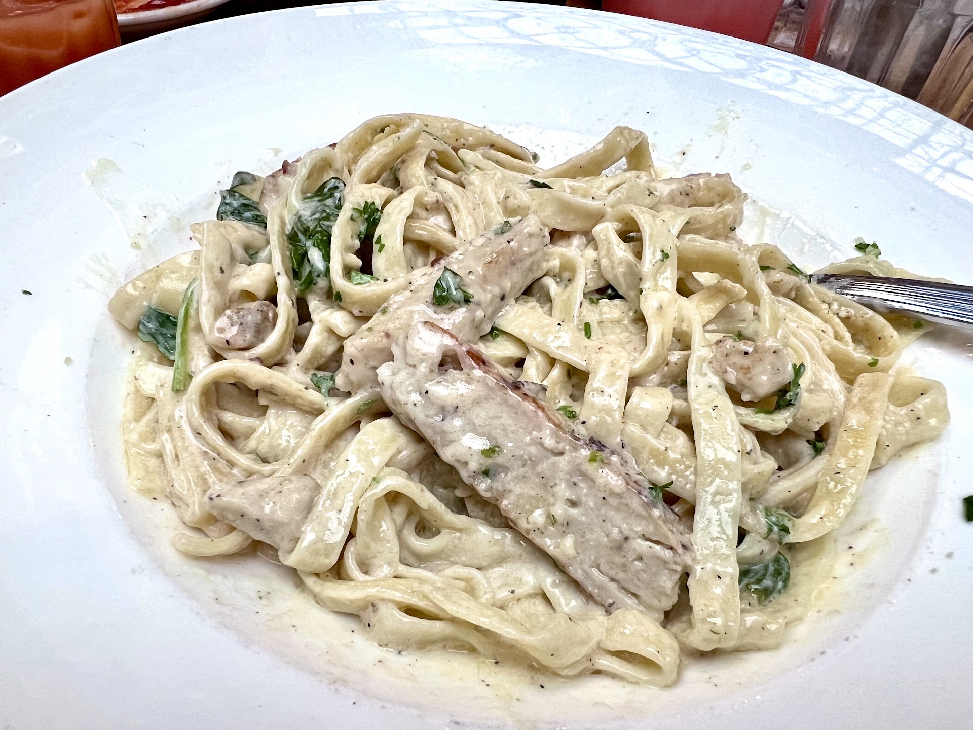 Read moreThis is the hotel restaurant within the embassy suites. It’s a very airy open seating area with a bar serving cocktails, wine and about 5 beers on tap. Went with a Vienna lager that was perfect to wash down our appetizer of buffalo wings which came out very quickly, were hot, juicy and very flavorful. It’s $17 for a plate of around 10 but given that they were cooked to perfection I was ok with the price. Hubby ordered the Alfredo with chicken he needed more sauce so asked for extra and they brought it out in a small bowl no problem. I went with the shrimp tacos which were excellent, 3 plump fresh shrimp with this incredible pineapple slaw with a house sauce that was a perfect compliment to the slaw. I’ve had a lot of shrimp tacos in my life and these were up there in top 5 category. Our waitress was very attentive checking on us and clearing out plates as needed. Finished off with their house cheesecake that was very light and tasty and got it to go so forgot to grab a pic before devouring it in our room. I know from reviews others have had unfortunate experiences with the food here but we were very pleased with our meal and would...
