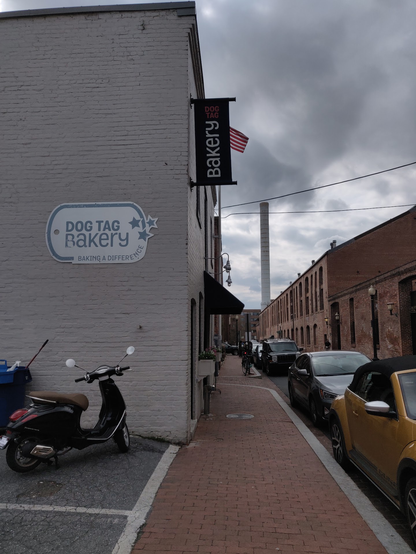 Walking into what might have once been a warehouse that is now a converted into a café, I tried Dog Tag Bakery for the first time. The vibe inside was eerily subdued. Service was discovered via a tiny break squeezed between tall counters, blocked by tables for patrons, and at the way back. Initially, the barista seemed confused by my order of medium cortado, but prepared it anyway. While waiting, I inspected the rest of the snacks in the case, and was sticker-shocked by sandwiches that were over $10 each! (Sadly, perhaps, that is going rate in Georgetown for a sandwich these days?) When the drink was ready, it appeared a bit small to me, so I asked if this was a medium. It was only then that I learned that although it is clearly written on the menu board above the counter that cortados come in three sizes at three different prices, the reality is that they are all made in the same-sized glass. Perhaps, this was her confusion when I asked for a medium? I now shared her confusion, and I didn’t know how much the drink was? As for the taste of the coffee, it was fine. Also, I later learned that café honorably assistants disabled war veterans, but this wasn’t apparent to me during my visit. I thought “Dog Tag” was a clever theme related to canines. So, with unclear pricing, over-priced sandwiches, and a confusing theme, I’ll try another...