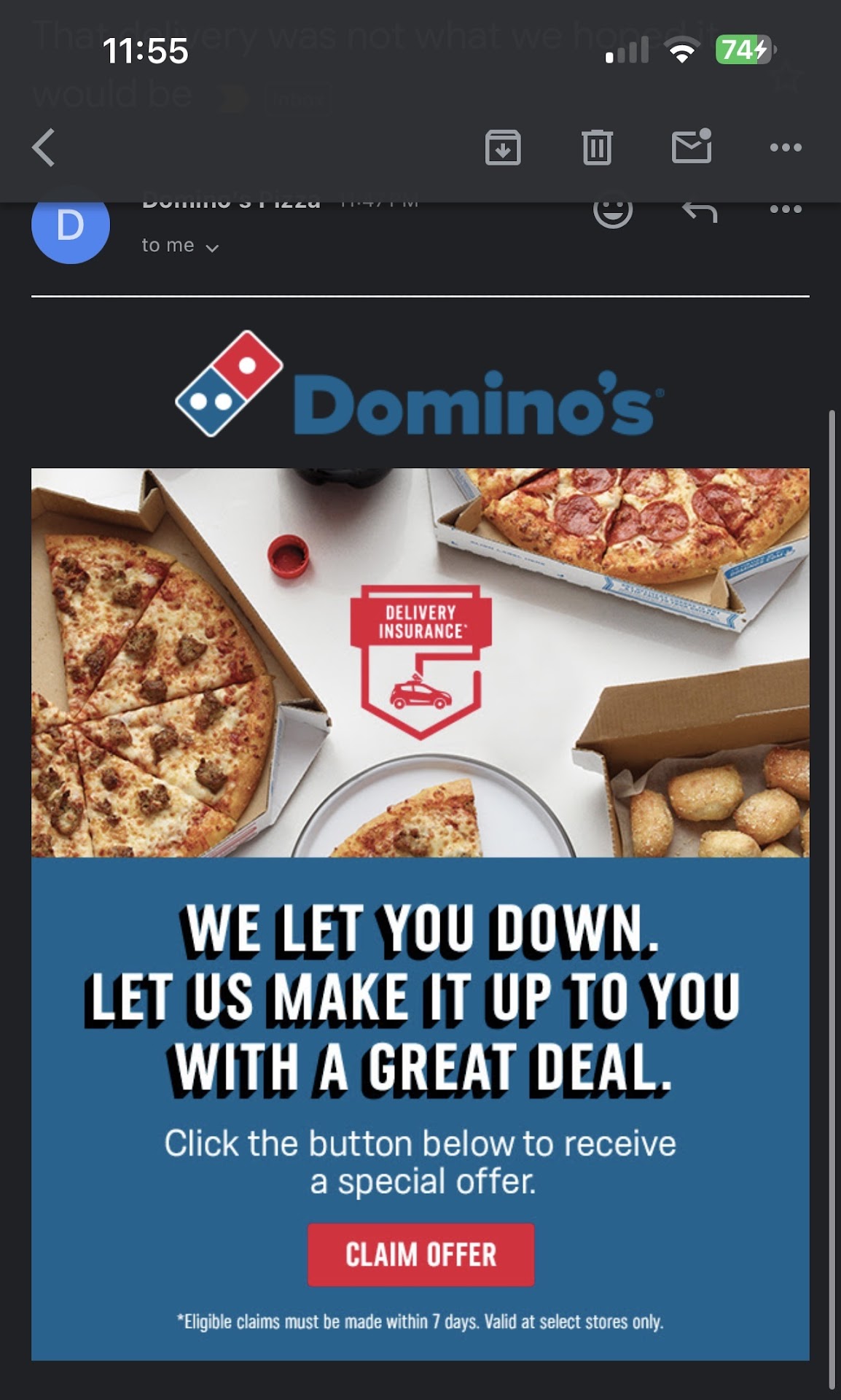 Read moreNot the experience I expected from Domino's. I'm usually a loyal Domino's customer and have had great service in the past, but unfortunately, this recent experience was disappointing. I placed my order around 9:15 PM and didn’t receive my food until 10:36 PM. The app indicated that the driver left the store at 9:45 PM, and since I live only six minutes away (near a university), I was surprised by the delay.