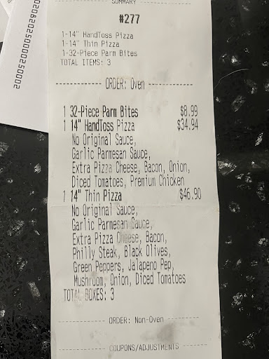 Read moreI ordered a spinach and feta specialty pizza and called the store to check if it was supposed to be made with marinara sauce instead of Alfredo, since we chose New York Style (which was new to us). They admitted it was a mistake and offered to remake the pizza if I brought it back. I declined since my kids were already eating it. They wouldn’t offer any other compensation until I insisted. Eventually, they offered credit for a medium pizza on my next order. Since I had ordered a large, I asked for credit for a large pizza, but they refused, saying it was because I didn’t bring the pizza back. This is absurd. If they admit to a mistake, why can’t they provide better customer service? The employee refused to give me their name or the manager’s name, which is even more frustrating. When I asked how to contact someone if I’m dissatisfied with the service, they told me to speak to them in person or leave a review. I’m extremely disappointed. We’ve ordered from this location many times, but the quality and service have declined...