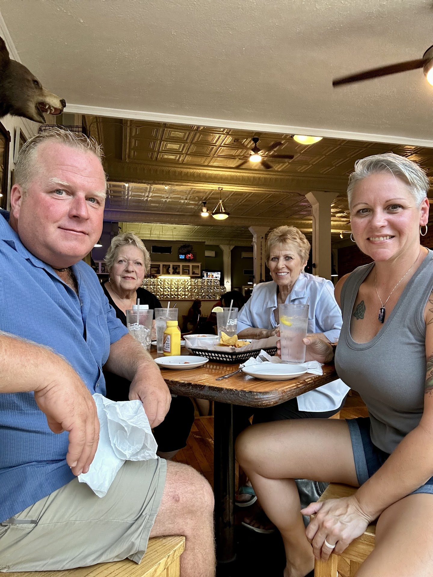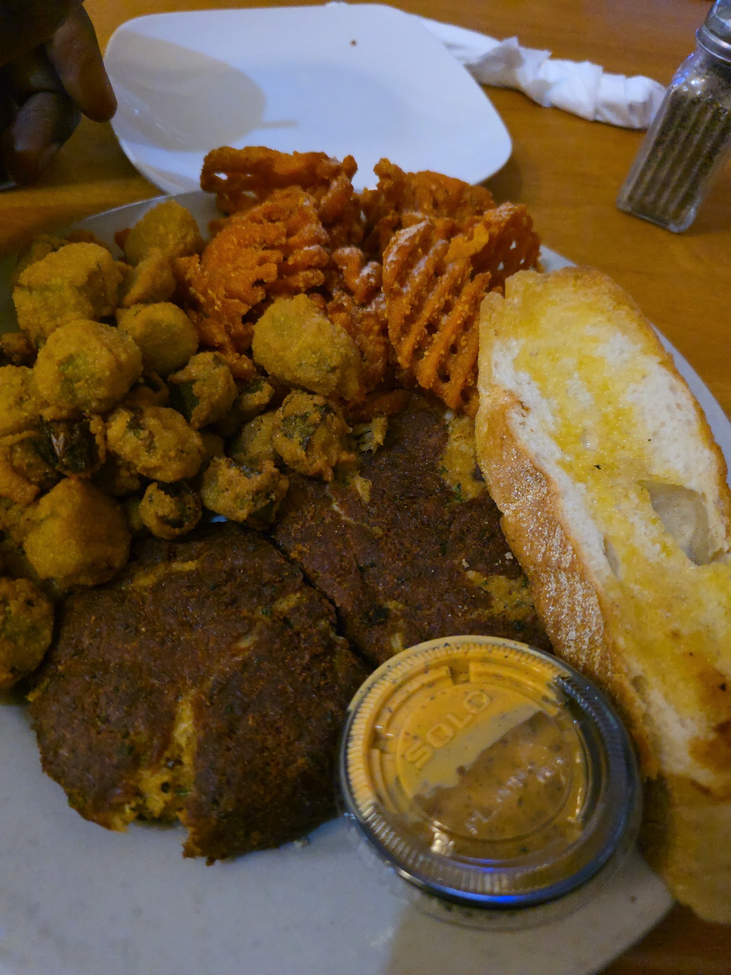 Alright, so first up, the wait for a table wasn't too bad, maybe like 15 or 20 minutes. After getting seated, we started with the appetizer....the crab dip. Honestly, it didn't look that great, and taste-wise? Yeah, it tasted exactly how it looked, like it was missing... something. Just fell flat. The bread they gave you to dip with wasn't bad though, that was okay. Then came the gumbo. Man, I'm still not even sure what that was supposed to be. It seriously needed work. Zero depth of flavor. And the sausage? It added absolutely nothing, and looked suspiciously like chopped-up hot dogs. Not good. The crab cakes were just... alright. Nothing special, nothing terrible just dry and kind of salty. Honestly, you could probably grab some from Publix or Harris teeter, bake 'em at home, and they'd taste better. Seriously. BUT, the shining star of the whole plate? Those sweet potato fries. They were perfectly balanced, perfectly seasoned. That was actually a really nice surprise. The okra was pretty standard okra, like you'd get anywhere, you'd be fine with that. Now, the water? Yeah, avoid that. It tasted... thick, somehow? You could just tell it came straight from the tap, maybe through some filter that desperately needs cleaning. Just skip the water. Oh, and my date got the shrimp and grits – she said she did enjoy those, thankfully. But, and this is key, she said she wouldn't be going back either. Even with liking the grits, she felt everything else just left a bad taste in her mouth... no pun intended! Overall feeling? I left pretty unhappy, really wishing the food had been better for me. It was definitely busy in there, and the staff were hustling, keeping up with how chaotic and hectic it was. They were really moving. But honestly, it was hard to tell who even worked there with so many people coming in and out of the kitchen area. And with that front and back entrance thing, watch out for flies around your food – guess they can't help that, but still. Anyway, bottom line is neither of us will be going back., Just not my cup of tea at all, and apparently not hers either, she felt bad because she wanted to go here for a while and took me out here for my birthday and it ended up being very...