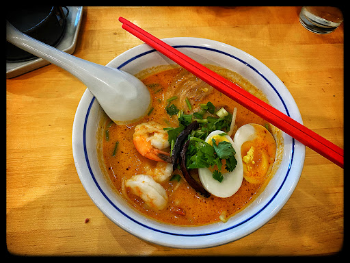 Ok, now that that’s out of the way, let’s get down to Thai tacks. The steamed buns with BBQ pork were not what I was expecting, but were delish. It’s a flat steamed bun folded over the pork with cilantro. Delicate and light, will add to my list of things I want to learn how to make. Once seated, you order at the counter and they bring the dishes to your table. Service was pleasant and attentive. They asked my friend how spicy he wanted his Pad Thai, he said zero spice, I got the Spicy Tom Kha Ramen with coconut milk and they also gave me zero spice. Both dishes were sweeter than we expected, not bad, but they cook sweet there. Considering they dish was called Spicy, I was expecting spicy. But even then, it was flavorful and nice. Not huge portions for the price, but we weren’t disappointed. Presentation was nice, the place felt clean and the staff were welcoming. Both server and cook called out thank you on our way out. Would I make this my regular place? Probably not. Would I fight dragons to get there or walk a mile in the snow? Unlikely. If I’m going to order spicy, I want sweat dripping off my nose by the time I’m done, or at least a condiment tray so I can give it a little...