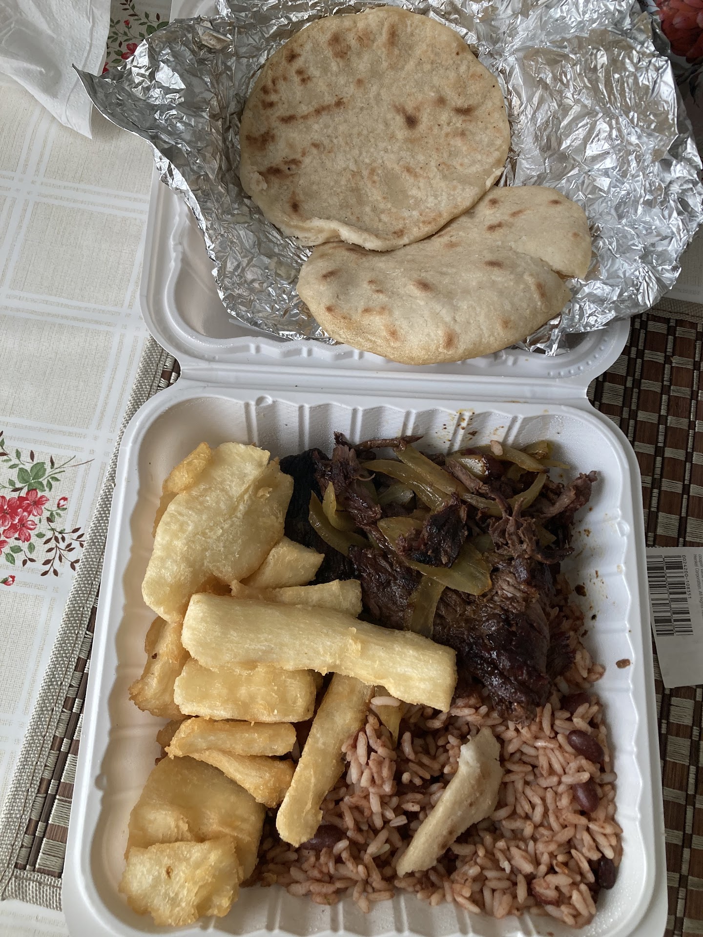 Salvadorian enchilada (Okay) - note that this is what you might know as a tostada. Forgot to get a picture but it had good pulled chicken. Tortilla was homemade and fried, rather than the chip style, but since it sat around for a long time it was super soggy and just fell apart when I picked it up. Not very appetizing but the flavors were good.