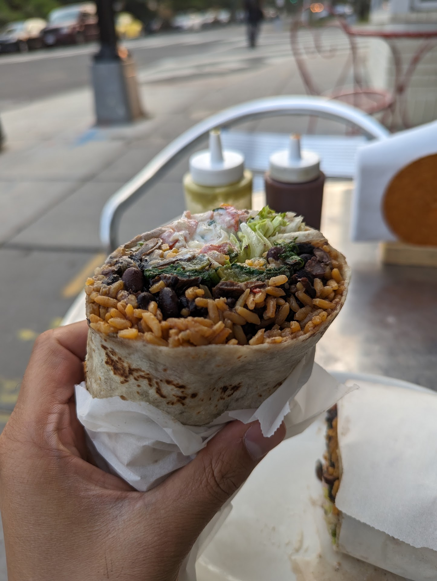 I've been on a bit of a burrito kick, so I tried the Veggie Burrito. They have 4 types of veggie fillings, but here's the kicker: you can just get a mix of all of them in one!! The mushrooms were so well cooked, the cauliflower was lightly fried, the nopales were so savory; it was filled perfectly. In addition, the two salsas they had (Roja and Verde) added just the right amount of flavor and spice to make the burrito a 10/10.