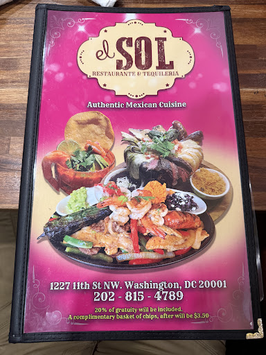 Read moreI was in DC craving Mexican food restaurants when I was .3 miles away from El Sol Restaurante. The reviews where good and I like trying new places so I decided to get them.