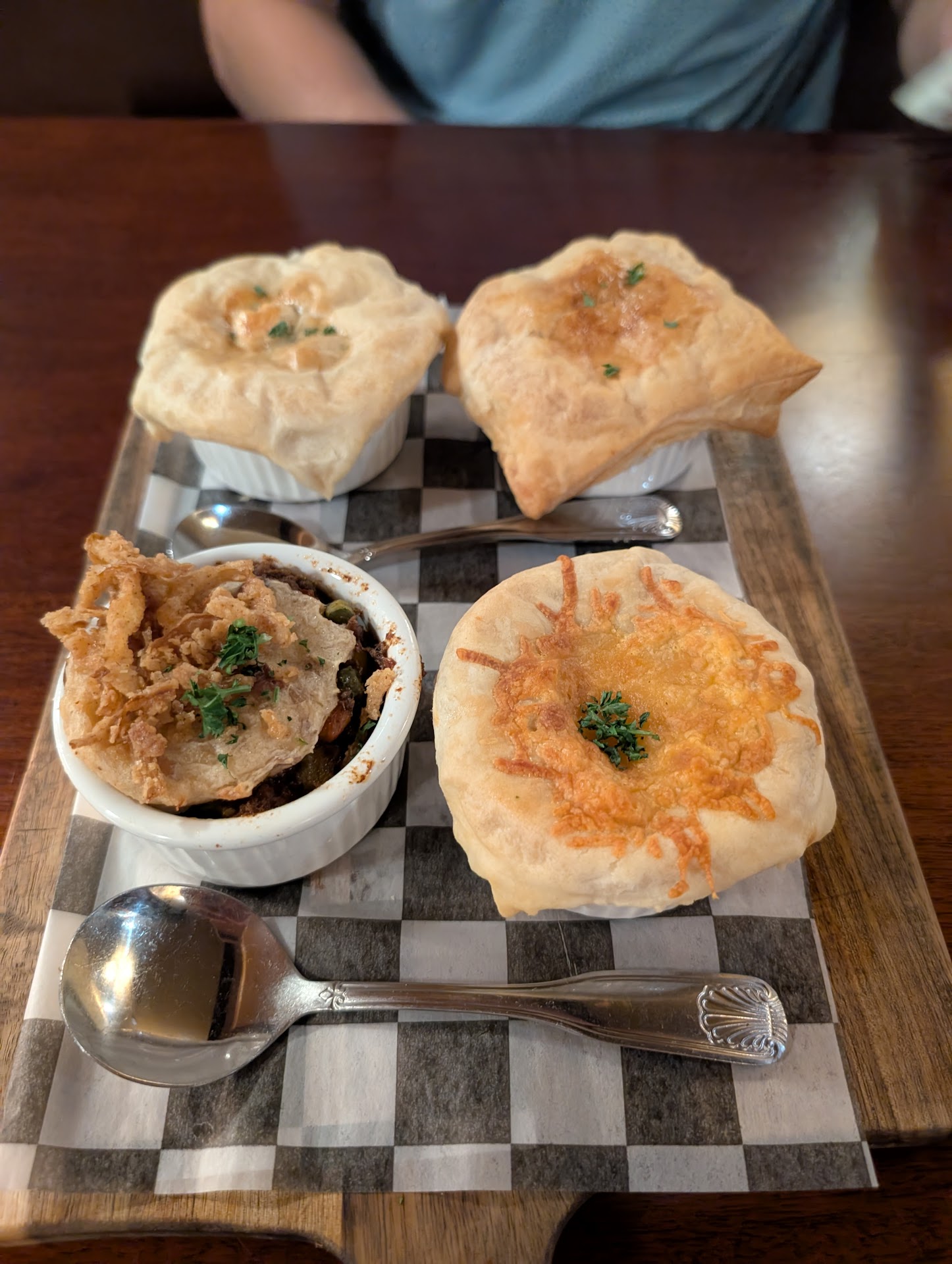 Read moreWe had a reservation for 5 on Sunday April 14th for dinner. We arrived on time, traffic was a mess, bot on time. We waited at the host station for approximately 10minutes before we were acknowledged. Took a few more minutes to get our table which is understandable. Our server started off attentive. Took our drink and appetizer order. I had coffee with water. The rest of the party having soda and one water. Sodas came quickly. My coffee was to my dismay still not delivered along with the water for another 5 minutes. Coffee was COLD and then it took 10 more minutes to arrive. While waiting for our appetizers we placed our dinner order. Waited another 15 minutes for our appetizers when the expo showed up with our dinners. Told him we had appetizers and wanted them before our meal. He took the meals back and probably 5 minutes later our server arrived with our hummus and at this time told us our other appetizer was unavailable. 30 minutes after sitting this happens. We get the hummus and then our dinner comes. 3 of us had pot pies with salad and one burger with salad. The Shepard's pie was dry and dried out from being under the heat lamp. All 4 plates that had salad came with warm wilted salad that was never removed from the plates while under the heated line. We ate what we had for we were soon to be at the Warner Theater for a performance. After dinner we wanted dessert, but there was only one dessert on the menu left and none of us wanted bread pudding. We asked for our bill, tipped customary and left. This was very poor. Really bad restaurant management. I have been in this business for 38+ years working my way up from dishwasher to general manager. Leadership not present to allow for quality control and smooth operation. Not to mention being understaffed for as busy as you were. First and last time I...