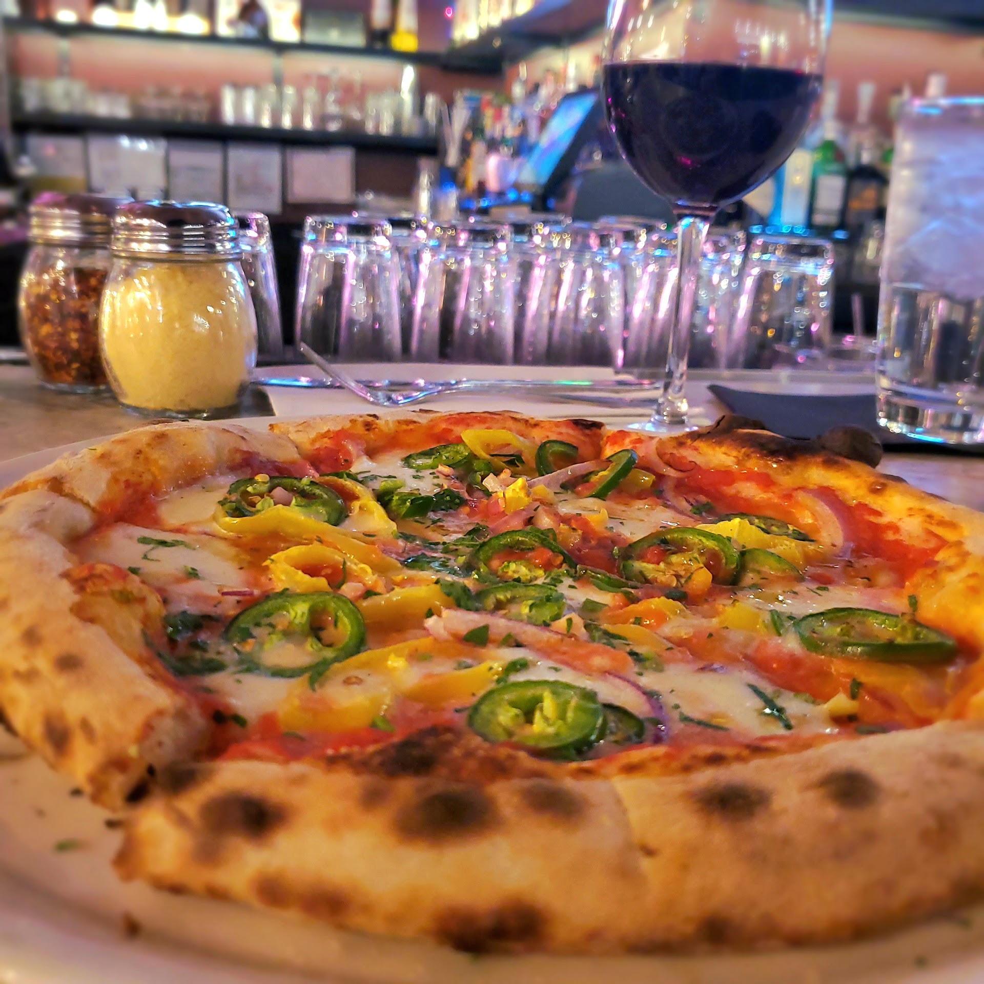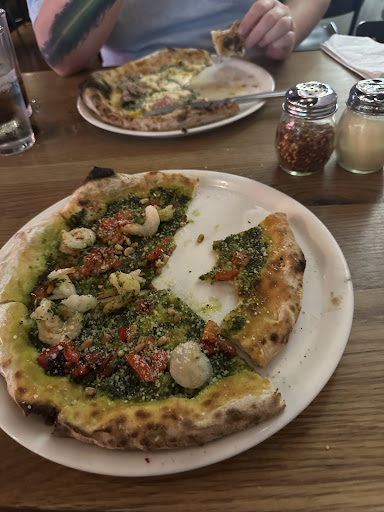 Stopped by before seeing a play. A friend told me about this place and I only had an hour before I had to leave. Ordered (and recommend) the Diablo pizza pie, a glass of the Nero d'Avola red wine, and some really really good Vanilla Ice Cream, which came in a small bowl of 3 scoops.