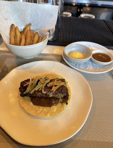 First served a rice cracker amuse bouche, we could tell we were in for something special. Out came our orders — the seaweed mole that left us wanting more; the stone soup that was equally earthy and rich but also refreshing; the barbella eggplant dish that made us feel like we haven’t had eggplant cooked correctly before; and the Denver steak and savory au jus that had us wanting to lick the plate clean—not a bad dish in the bunch at all!