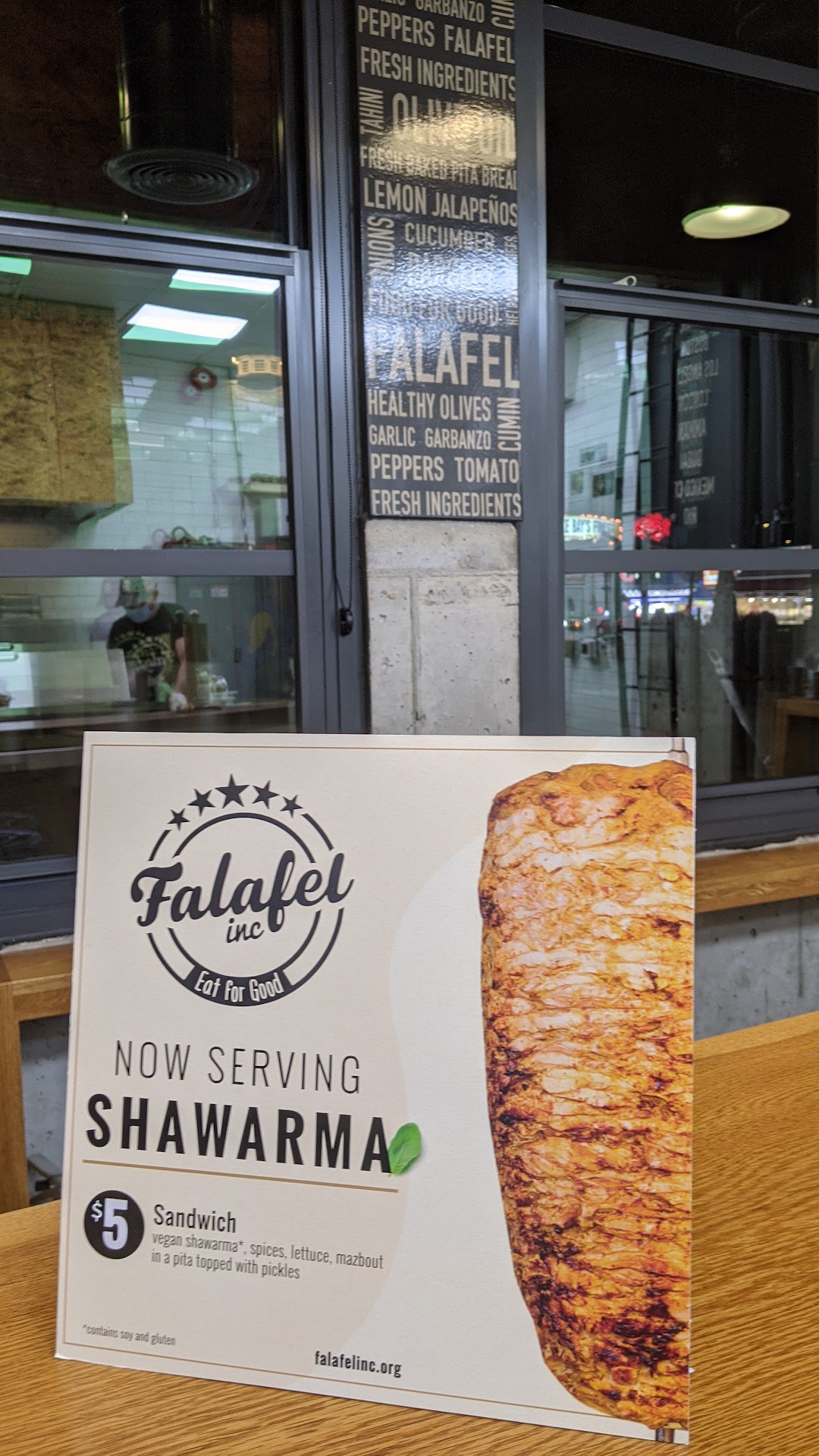Best falafel I ever had. No, the ONLY falafel I have ever liked. Falafel is one of those things that sounds like it should be tasty. It looks tasty. But whether it's a famous chain or a highly rated local middle eastern restaurant, every time I got falafel, I have regretted it. It's always been dry and gritty. Not here. The falafel here is tasty, crunchy and not dry (can't say moist because falafel shouldn't be moist). Maybe it's because they make them small here so the center cooks before the outside is overcooked and dried out. Maybe it's because they have an extremely limited menu and they focus only on things they do well. Whatever the reason, this is the only falafel place I will revisit specifically for the purpose of getting falafel. I even thought about buying an extra order of falafel (they sell 6 falafel balls as an "appetizer" for $3). On top of that, it is the most reasonably priced eatery in the waterfront district. $6 for a falafel sandwich that was delicious and a decent portion size. You could order that, falafel appetizer and a soda and it'd cost less then getting a personal pizza or a sandwich or a burger anywhere else in the area. Next time I go, I may eat somewhere else but I'm stopping here to get a falafel sandwich first. The only "complaint" I have is that they are so popular, many of their delicious condiments/sauce bottles were empty. But the staff keeps the line moving so you won't wait long for your food (my travel companion went to the burger place next door same time and he got his burger after I got my falafel and...