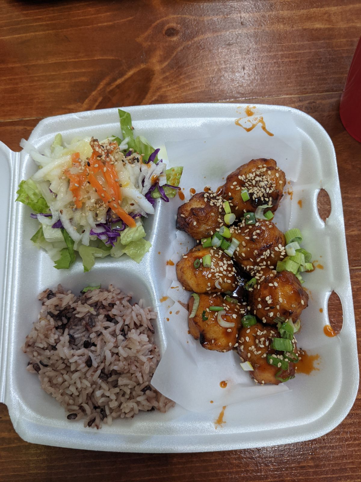 This place has gone downhill quickly, nah, at lightspeed. The prices are ridiculous. The serving portions are a joke, and you're lucky if you're even greeted or thanked when & after you visit. Several menu items are served as a entrรฉe but in a "real" Korean place, they are side dishes that come with any meal (for free), not here. We were told one tofu menu item was "sold out," then 3 minutes later, told they would make it for us. The food taste was average at best. We paid $18 for Korean fried chicken!! (pictured) which was 6 balls of dough with little or no chicken. Two of our party are married to Koreans and have lived in Korea for several years, so I'd say that makes their opinions valid. We will not be back. We used to love this place prior to 2020.. it's not the same, not even close. To top it off, they don't even include kimchi with your meal. That's extra! C'mon!! Save your money and go next door to...